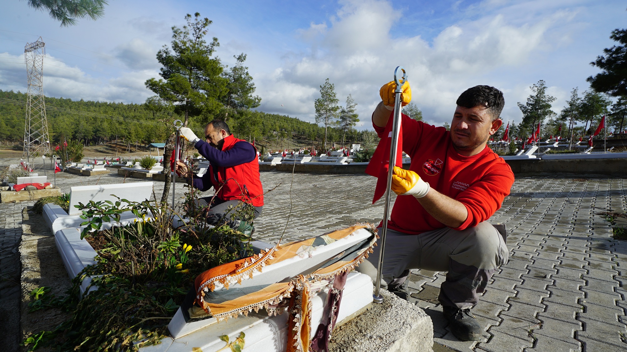 Büyükşehir Belediyesi ekipleri, hem depremde hayatını kaybeden vatandaşların aziz hatırasını yaşatmak hem de kabir ziyaretlerinin daha huzurlu ve düzenli bir ortamda gerçekleştirilebilmesini sağlamak amacıyla sahada yoğun bir mesai harcıyor.