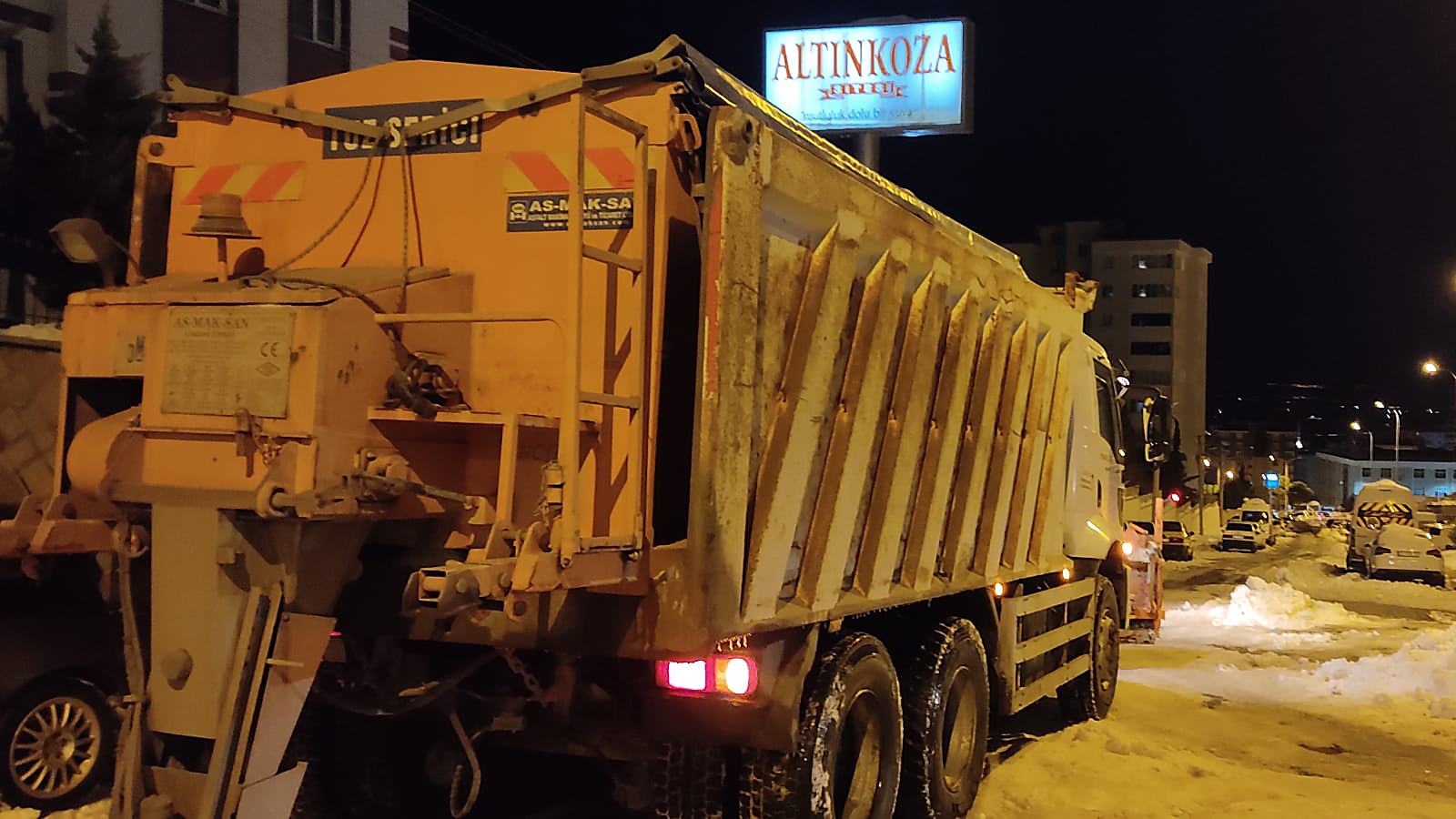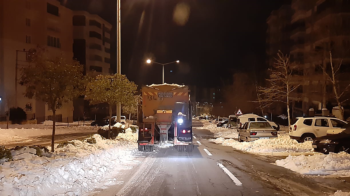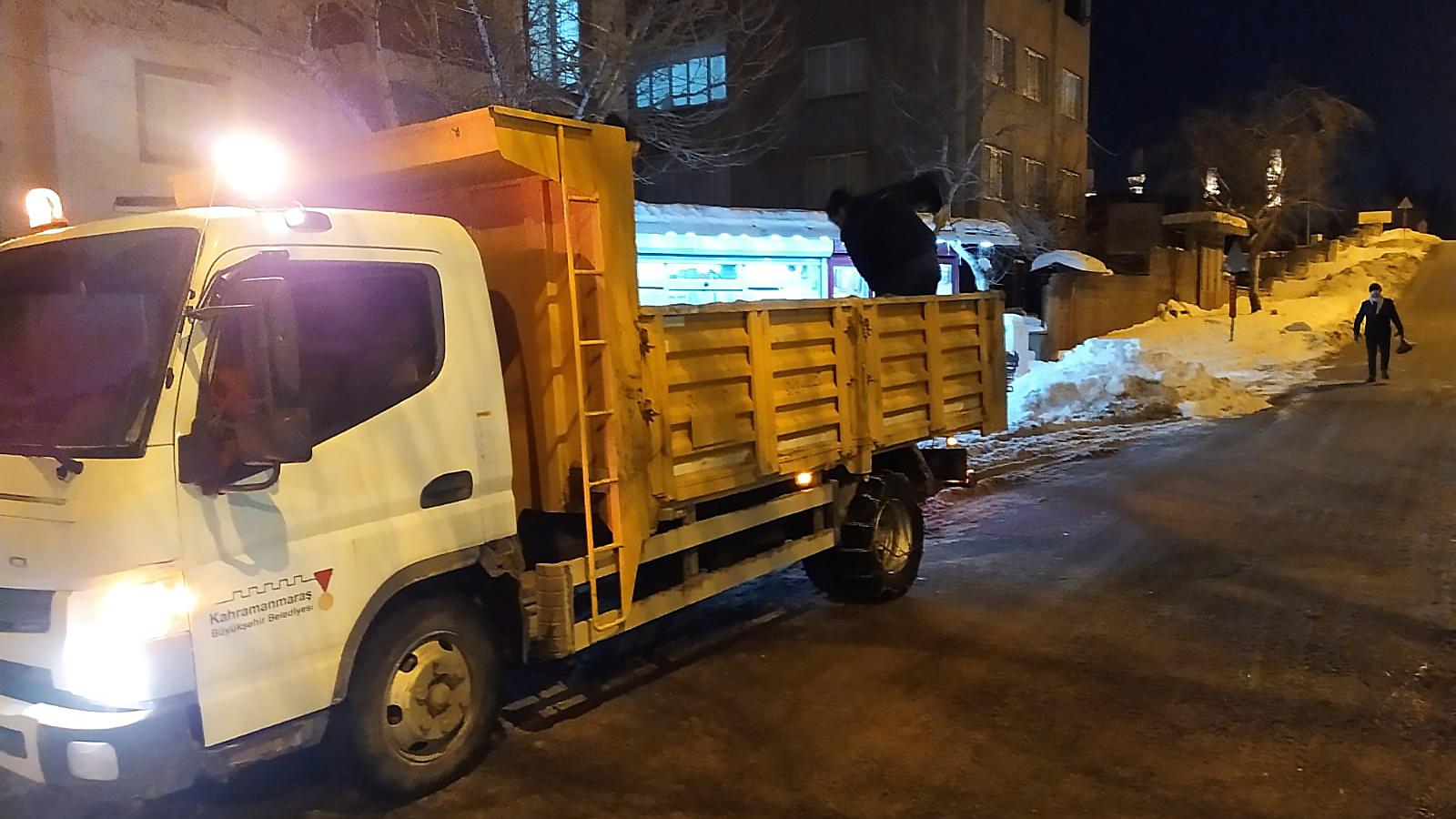 Kahramanmaraş Büyükşehir Belediyesi kış şartlarıyla mücadele çalışmalarını aralıksız sürdürüyor. Şehrin 11 ilçesinde 210 iş makinesi ve 400’ün üzerinde personelle gerçekleştirilen çalışmalar kapsamında, yoğun kar yağışına maruz kalan arterler ulaşıma açık tutuluyor. Yaklaşık bir haftadır devam eden çalışmalarda; yaya ve araçlar için trafik güvenliğinin sağlanması adına buzlanma önleyici uygulamalar sürüyor. Hava sıcaklığının sıfırın altında hissedildiği gece saatlerinde başlayan tuzlama ve solüsyon çalışmaları günün ilk ışıklarına kadar devam ediyor.