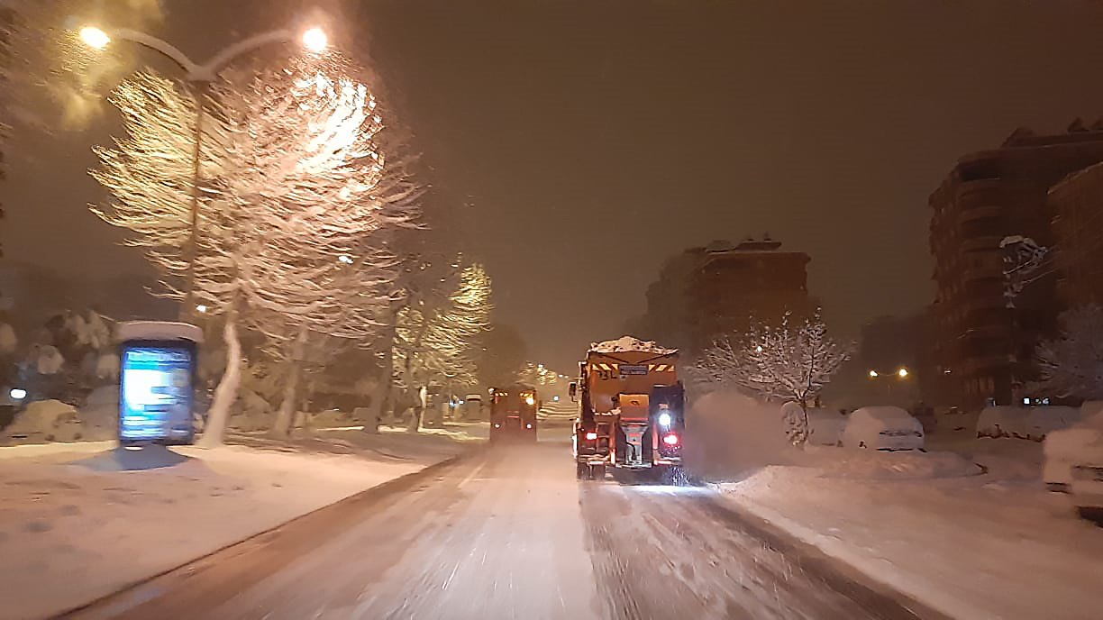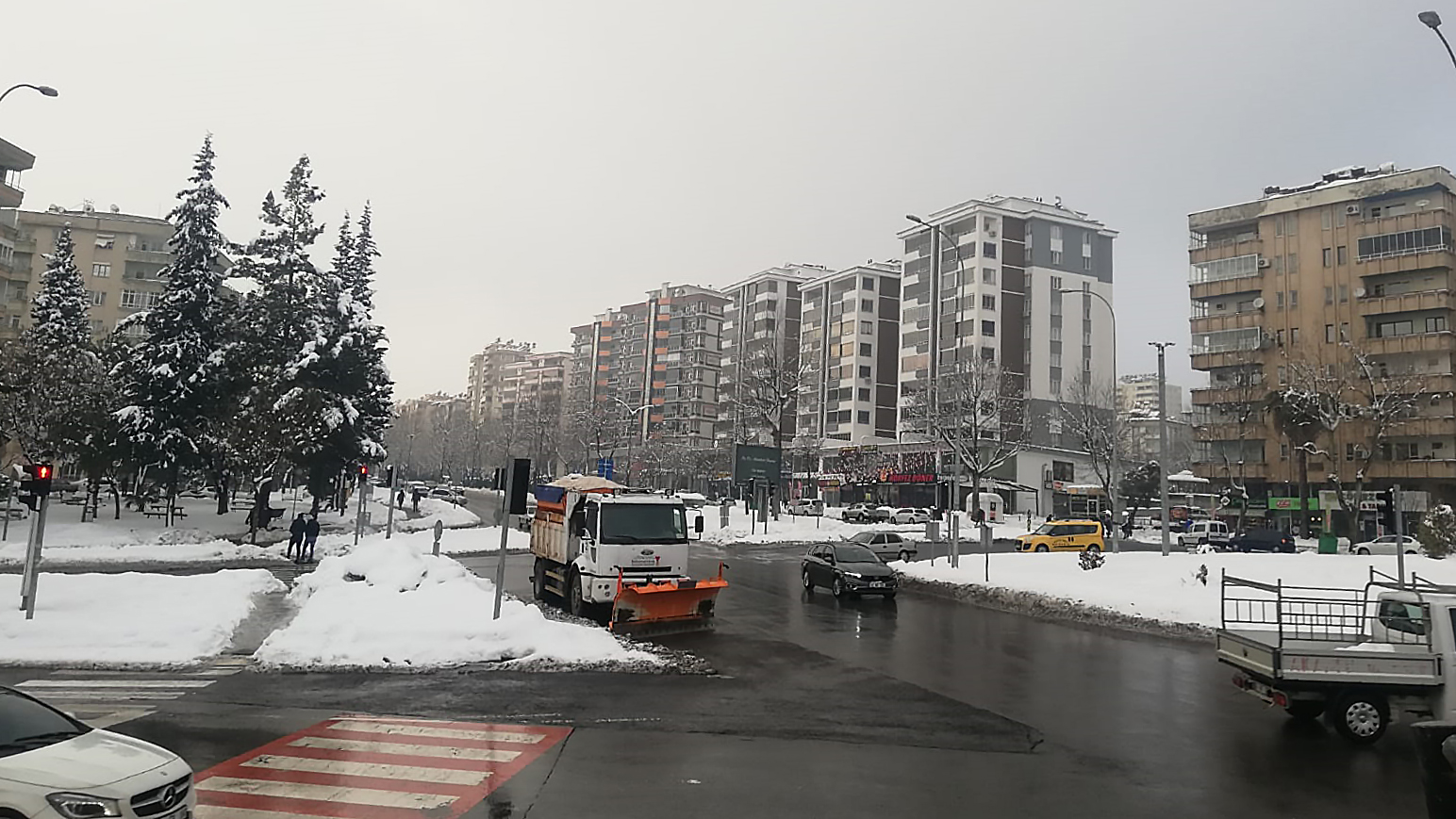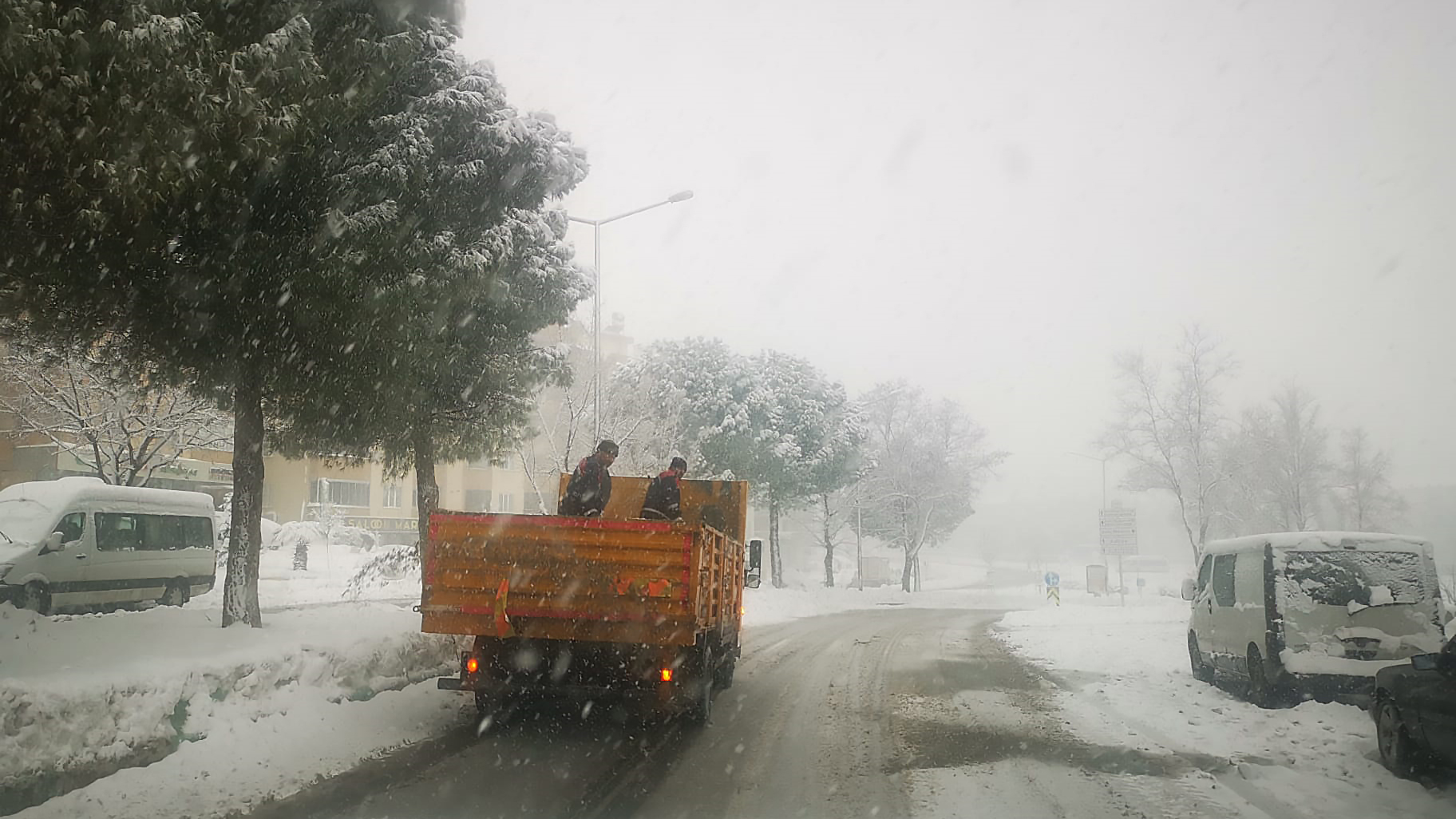Kahramanmaraş Büyükşehir Belediyesi kış şartlarıyla mücadele çalışmalarını aralıksız sürdürüyor. Şehrin 11 ilçesinde 210 iş makinesi ve 400’ün üzerinde personelle gerçekleştirilen çalışmalar kapsamında, yoğun kar yağışına maruz kalan arterler ulaşıma açık tutuluyor. Yaklaşık bir haftadır devam eden çalışmalarda; yaya ve araçlar için trafik güvenliğinin sağlanması adına buzlanma önleyici uygulamalar sürüyor. Hava sıcaklığının sıfırın altında hissedildiği gece saatlerinde başlayan tuzlama ve solüsyon çalışmaları günün ilk ışıklarına kadar devam ediyor.