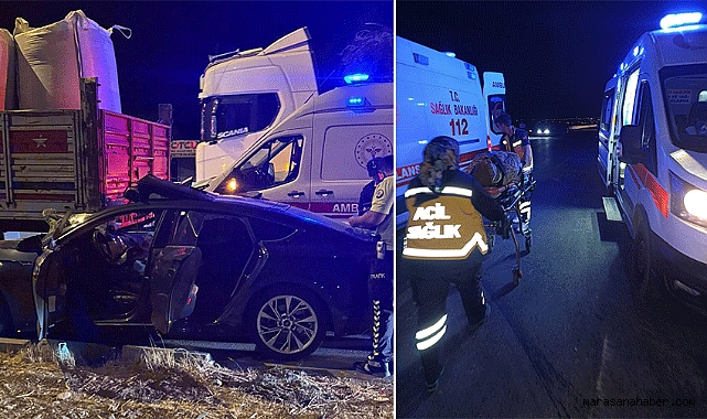 Seyir halindeki otomobil, aynı yönde ilerleyen tıra arkadan çarptı. Çarpmanın etkisiyle otomobildeki sürücü ve yanında bulunan 2 kişi yaralandı.