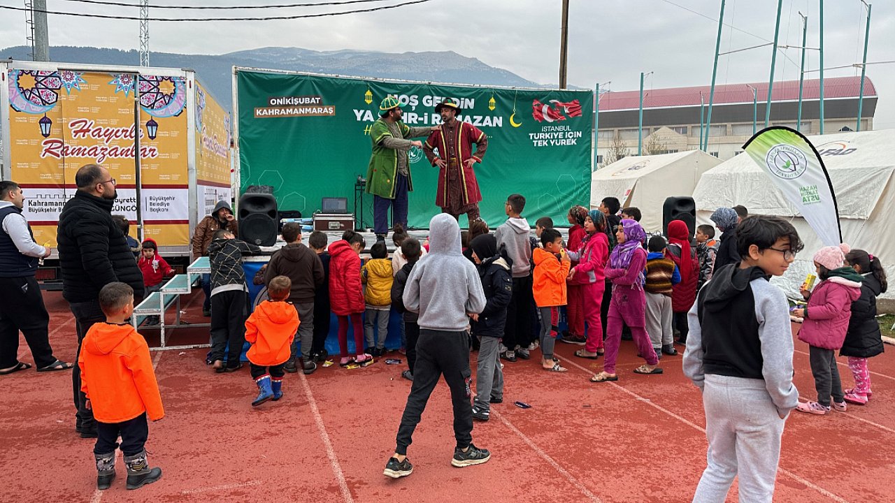 Depremin yol açtığı yaraların sarılması ve hayatın normale dönmesi noktasında Başkan Hayrettin Güngör öncülüğünde yoğun gayret gösteren Kahramanmaraş Büyükşehir Belediyesi, afet sonrası çocukların yaşayabileceği travmaları en aza indirmek için psiko-sosyal destekler ile miniklere yönelik faaliyetlerini sürdürüyor. Bu kapsamda geçici barınma merkezlerinde çocuklara yönelik çeşitli etkinlikler gerçekleştiriliyor. Barınma merkezlerine kurulan şişme oyun alanlarında eğlencenin tadını çıkaran çocuklar, sahnelenen geleneksel Karagöz Hacivat gösterisini de büyük bir ilgiyle takip ediyor. Renkli dekor ve eğlenceli konularıyla miniklerin beğenisi kazanan tiyatro gösterileri, çeşitli müzik ve danslarla da çocukların neşe kaynağı oluyor. Büyükşehir Belediyesi’nden yapılan açıklamada, oyun alanlarının ve çeşitli etkinliklerin şehir merkezinde ve ilçelerde çocuklarla buluşmaya devam edeceği belirtildi.