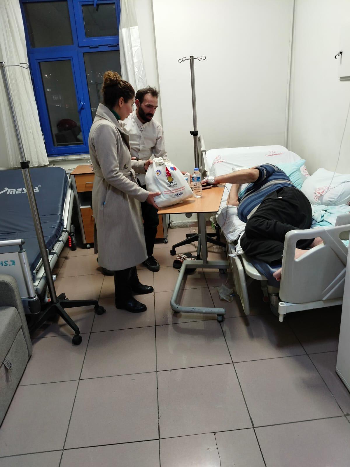 Sosyal Yardım İşleri Müdürlüğü tarafından her cuma gecesi gerçekleştirilen ziyaretlerde, hastalara ‘Şifa Niyetine’ yazılı şifa paketi hediye edilerek geçmiş olsun dilekleri iletiliyor.