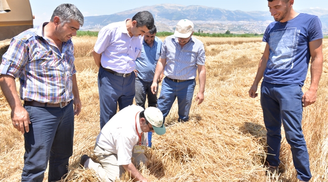 Kahramanmaraş tarımında önemli bir potansiyele sahip olan buğday alanlarında hasadın başlaması ile dane kayıplarının en aza indirmek için çalışmalar hızlandı.Arazide tarla başlarında İl Müdürlüğü teknik elemanları tarafından yapılan kontrollerde hasadın kayıpsız yapılası hedefleniyor.Kahramanmaraş İl Gıda Tarım ve Hayvancılık Müdür Vekili Mustafa Bozkurt Kahramanmaraş’ta buğday hasat döneminin başlamasıyla birlikte arazilerde çiftçileri ziyaret ederek bilgi aldı.Konu hakkında açıklama yapan İl Gıda Tarım ve Hayvancılık Müdür Vekili Mustafa Bozkurt, ‘Buğday hasadının başlaması ile birlikte bizde arazide teknik elemanlarımız ile birlikte denetimlerimizi yapıyoruz. Dane kaybının önlenmesi için biçerdöverdeki hataları anlatılıp önlem alınmasını sağlıyoruz. Kahramanmaraş’ta hedefimiz sıfır dane kaybı’ dedi.BİÇERDÖVERLE HASATTA DANE KAYBININ NEDENLERİ;1- Zamansız hasat (hasat olgunluğu devresi harici hasat),2-Biçerdöver kullanıcılarının Operatör Yetiştirme Kursu’na katılmadığından teknik bilgilerden mahrum oluşu,3. Kurs görmüş dahi olsa kar amacı ile biçerdöverlerin yüksek hızda çalıştırılması,4. Biçerdöveri hububat durumuna göre her tarla için yeniden ayar yapmaması,5. Tarlanın tesviyesiz olması,6. Çiftçinin biçerdöver hakkındaki teknik bilgileri ve dane kayıp ölçüm yöntemini bilmemesi,Bu nedenler kaldırılırsa tahıl toprağa dökülmeyecek, hasat esnasında kaybedilmeyecektir. Yoğun bir emek, masraf ile yetiştirilen ve hasada gelen buğday ürününün tane dökümüne ve kalite düşüklüğüne meydan vermeden zamanında, biçerdöver ehliyeti bulunan tecrübeli operatörlerle yapılması büyük önem taşımaktadır.ÜRÜN SAHİPLERİNE UYARILAR :Makineli Hasada uygun tohum kullanmaları (Ürün seçiminde ilk bakla yüksekliği fazla, aynı zamanda olgunlaşan, kendiliğinden döküm yapmayan),Uygun çeşit ve miktarda gübre kullanmaları ( yanlış gübreleme ve gereğinden fazla gübre kullanarak yatmaya meydan vermemek),Uygun sulama yöntemlerini kullanmaları (yatmaya neden olmayan, göllenme, çamurlanma meydana getirmeyen, sulama yöntemlerini kullanmak)Yabancı otların makinenin çalışmasını engellememesi için, (tıkanmalar vb. yapmaması için) kültürel tedbirler almaları veya kimyasal mücadele yapmaları,Hasad öncesi kayıpların meydana gelmesinin engellenmesi (yabanı hayvan, evcil hayvan, insan, alet-ekipman vs. nedenlerle kayıpların meydana gelmesinin engellenmesi),Arazi tesviyesi yaptırmaları (Makinenin biçici ve kesici organlarını ve biçim yüksekliğini ayarlanması),Tarlada taş, ağaç artıklarını temizlemeleri,Biçerdöver sahipleri ile hukuki geçerliliği olan sözleşme imzalamaları,Taşıma ve depolama kayıplarını azaltma yönünde hazırlıklar yapmaları,Biçim esnasında ürünün başında olmaları ve dane kayıplarını sık sık kontrol etmeleri, operatörü uyarmaları,Hasat olgunluğuna gelmeyen ürünlerini ve çiğli ürünlerini hasat ettirmemeleri,Yangın çıkma ihtimaline karşı, orman alanlarına yakın tarlalarda biçim yaparken,hasat sırasında pulluk bağlı bir traktörü tarlada hazır bulundurmaları.Dane kayıplarını sizlere en yakın İl ve İlçe Gıda Tarım ve Hayvancılık Müdürlüğüne Bildirin.