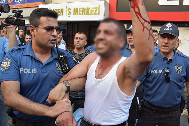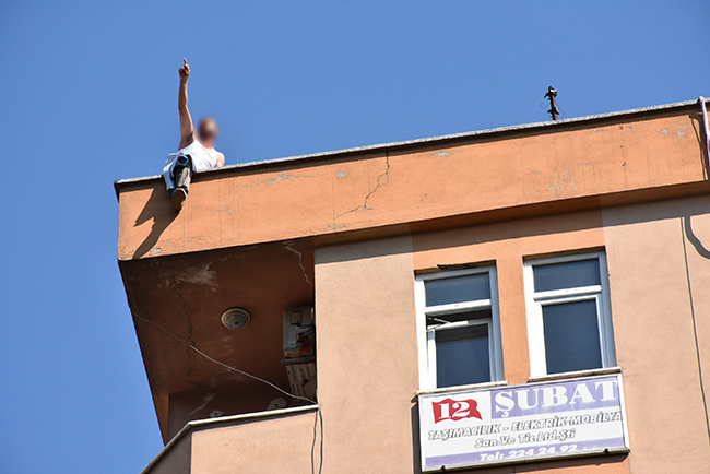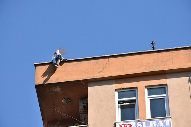 Kahramanmaraş’ta bir kişi, Hükümet Caddesi üzerinde bulunan Tekinşen İş Merkezi’nin çatısına çıkarak intihar girişiminde bulundu. Olay saat 16.00 sularında meydana geldi. Hükümet Caddesi üzerinde bulunan Tekinşen İş Merkei’nin çatı katına çıkan bir şahıs, intihar girişiminde bulundu. Olay yerine çok sayıda polis ekibi, ambulans ve itfaiye ekipleri sevk edilirken, kahramanmaraş Büyükşehir Belediyesi İtfaiye ekipleri şahsın atlama ihtimaline karşı tedbir aldı.İş hanının damına çıkan polis ekipleri intihar girişiminde bulunan şahsı ikna etti ve aşağı indirdi. Bileğini kestiği görülen şahıs, ambulansla birlikte Necip Fazıl Şehir Hastanesi’ne sevk edildi.