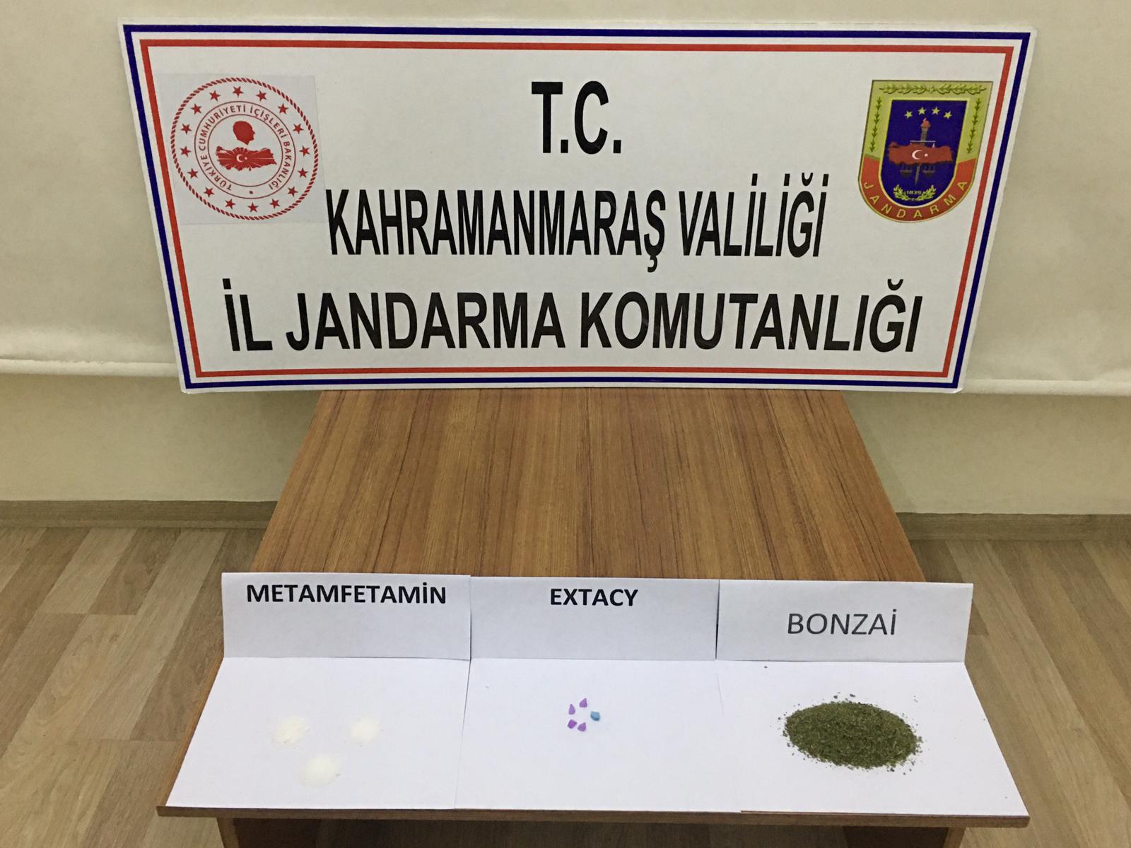 Kahramanmaraş’ta jandarma ekipleri tarafından gerçekleştirilen uyuşturucu operasyonunda 4 kişi gözaltına alındı.Kahramanmaraş İl Jandarma Komutanlığı ekiplerince; il girişinde 28 Ekim 2019 günü icra edilen operasyon neticesinde; 4 ayrı olayda toplam 60 gram Bonzai, 12 gram Metamfetamin ile 5 adet Extacy hap ele geçirildi. Olaya karışan 4 şüpheli şahıs yakalanarak, haklarında yasal işlem başlatıldı.