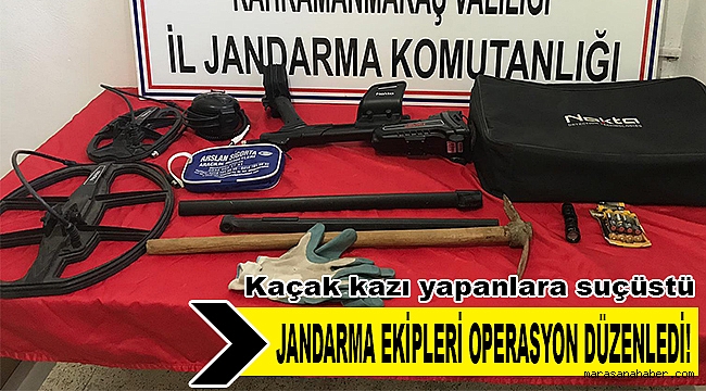 Kahramanmaraş İl Jandarma Komutanlığı ekipleri, Çağlayancerit ilçesinin Helete mahallesinde kaçak kazı ihbarı alması üzerine