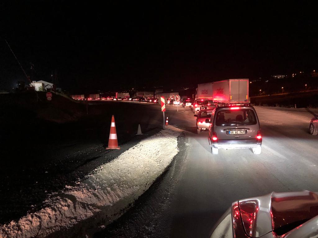 Kahramanmaraş (SHA) – Kahramanmaraş’ta yol yapım çalışması nedeniyle karayolunda kilometrelerce araç kuyruğu oluştu. Hafta sonu dönüş yoluna geçen sürücüler, yaşanan yoğunluk nedeniyle ilerlemekte güçlük çekti. Kahramanmaraş-Kayseri karayolu üzerinde yapılan yol çalışması nedeniyle, trafik tıkandı. Kahramanmaraş’a dönüş yolunda trafiğe takılan sürücüler ise, yaşanan yoğunluğu cep telefonu kameralarınca görüntüledi.