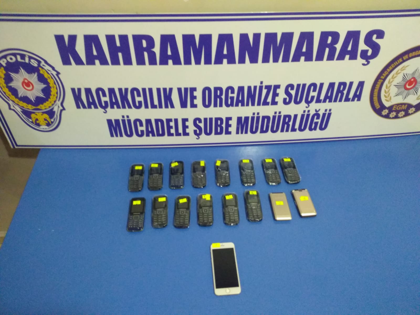 Kahramanmaraş’ta kaçak telefon operasyonunda 17 adet klonlu cep telefonu ele geçirildi.Kahramanmaraş Emniyet Müdürlüğü Kom Şube Müdürlüğü ekipleri tarafından kaçak cep telefonunun satışına yönelik operasyon yapıldı.Kahramanmaraş KOM Şube Müdürlüğü görevlilerince kaçak cep telefonu satışının önlenmesine yönelik yapılan operasyon neticesinde, il merkezi İsmetpaşa Mahallesinde faaliyette bulunan cep telefonu dükkânında yapılan aramada, 16 adet tuşlu ve 1 adet Apple marka olmak üzere toplam 17 adet kaçak/klonlu cep telefonu ele geçirildi. Operasyon kapsamında iki şüpheliye adli işlem yapıldı.