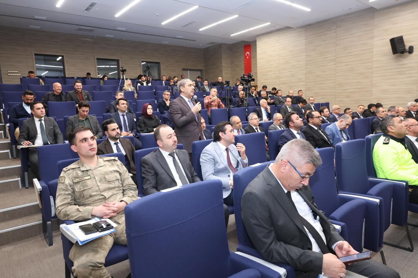 Toplantıda, şehrin imarından sağlığa, ulaşımdan tarıma kadar devam eden dev yatırımların mevcut durumu masaya yatırıldı.