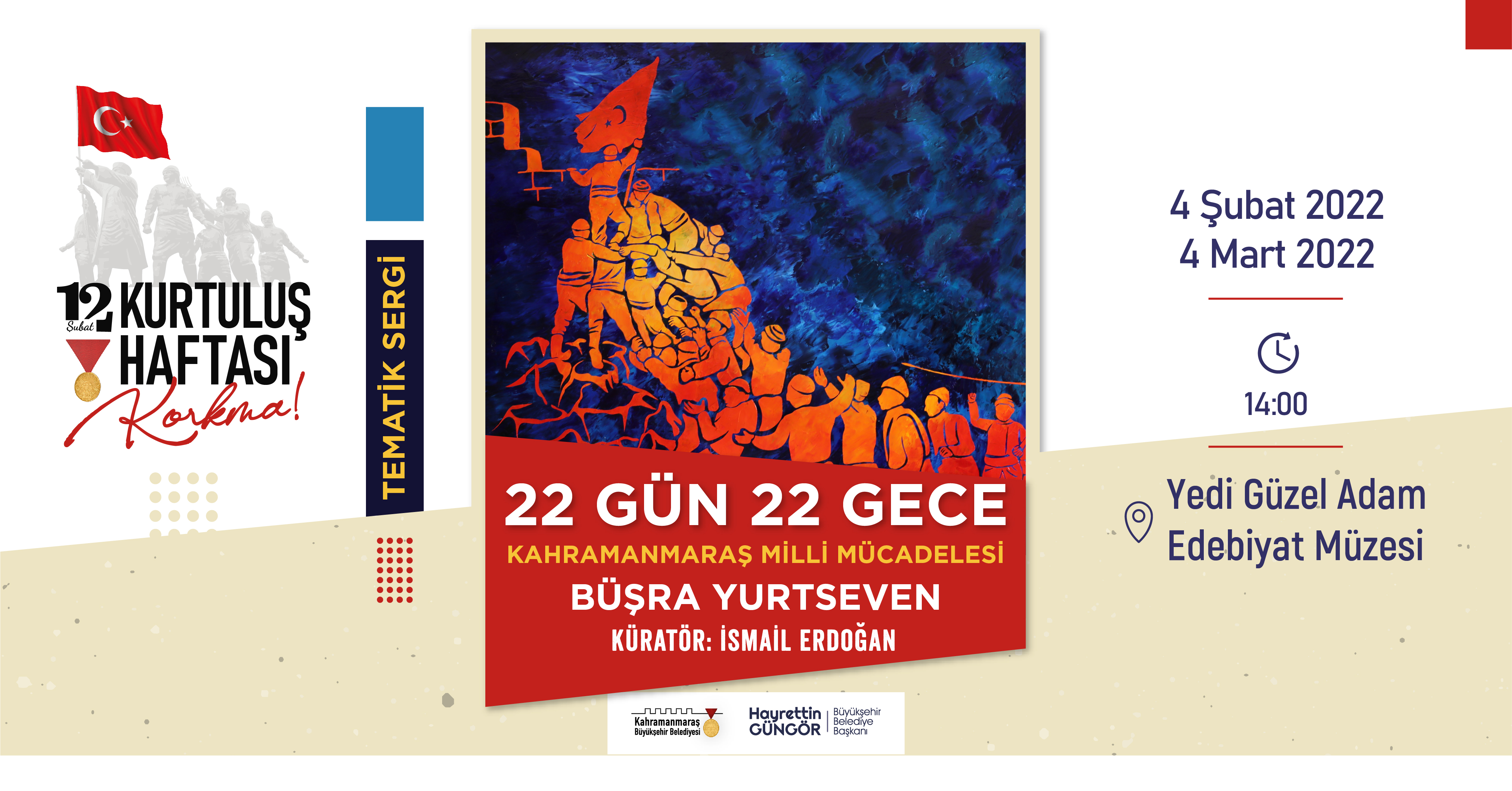 Saat 14.00: Yedi Güzel Adam Edebiyat Müzesi’nde “Kurtuluş” temalı resim sergisinin açılışı gerçekleştirilecek.