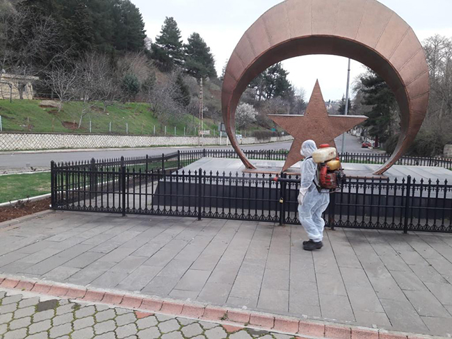 Kahramanmaraş Büyükşehir Belediyesi koronovirüs salgınına karşılık tedbir amaçlı, insanların yoğun olarak kullandığı çarşı, meydan ve piknik alanlarında ilaçlama ve dezenfekte çalışmalarını sürdürüyor.Kahramanmaraş Büyükşehir Belediyesi meydan, mesire alanı gibi bölgelerde ilaçlama ve dezenfekte çalışmalarını sürdürüyor. Büyükşehir Belediyesi Park ve Bahçeler Şube Müdürlüğü ekipleri tarafından Atatürk Meydanı, Demokrasi Meydanı, 15 Temmuz Millet Bahçesi, Aliya İzzetbegoviç Millet Bahçesi, Muhsin Yazıoğlu Mesire Alanı, Arslanbey Mesire Alanı ve otobüs duraklarında ilaçlama ve dezenfekte çalışmaları sürüyor. Ekipler insanların yoğun bulunduğu ortamlarda tedbir amaçlı yaptıkları çalışmalarda insan sağlığına zararlı olmayan kimyasal bileşenlerle dezenfekte yapıyorlar.