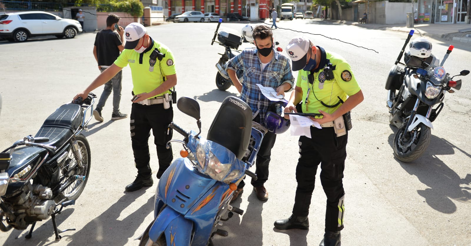 İl genelinde trafik kazalarının önlenmesine yönelik araştırma yapan Trafik Tescil ve Denetleme Şube Müdürlüğü ekipleri, motosiklet sürücülerinin karıştığı kazaların toplam kazalara oranının yüzde 20 olduğunu belirledi.İl genelinde eş zamanlı yapılan uygulamada polis, boş yollarda, sokak ve caddelerde gürültü yaparak vatandaşı rahatsız eden motosikletlere de müdahale etti. Şehrin önceden belirlenen noktalarında kazalara karşı denetim yapan ekipler, 246 motosiklet ve sürücüsünü kontrol etti, 48’i trafikten men edildi.Sürücü belgesiz motosiklet kullanan 78 kişiye, yetersiz sürücü belgesi ile motosiklet kullanan 24 kişiye, kask kullanmayan 120 kişiye, kural ihlali yapan 94 motosiklet sürücüsüne, abartılı egzozlu 13 motosiklete, plakasız 16 motosiklete, çekme belgeli, hurda ve çalıntı 4 motosiklet olmak üzere toplam 351 işlem yaptı.Drone kameralarınca görüntülenen denetimlerde İl Emniyet Müdürlüğü Trafik Tescil Denetleme Şube Müdürlüğü ekipleri, kontrollerin aralıksız süreceğini belirttiler.