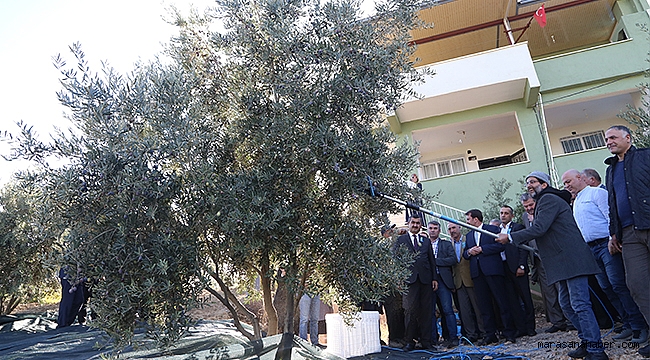 Konuşmaların ardından zeytin sahası gezilip, makinelerle