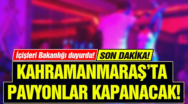 İçişleri Bakanlığı, Koronavirüs salgını tedbirleri kapsamında gece saatlerinde aktif olan eğlence mekânlarının geçici süreliğine kapatıldığını duyurdu. Uygulama kapsamında Kahramanmaraş’taki bar ve pavyonlar da yarın saat 10.00 itibariyle kapanacak.