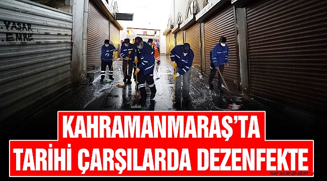 Kahramanmaraş Büyükşehir Belediyesi koronavirüs salgını kapsamında tedbir amaçlı tarihi çarşılarda yıkama ve dezenfekte çalışmalarını tamamladı.
