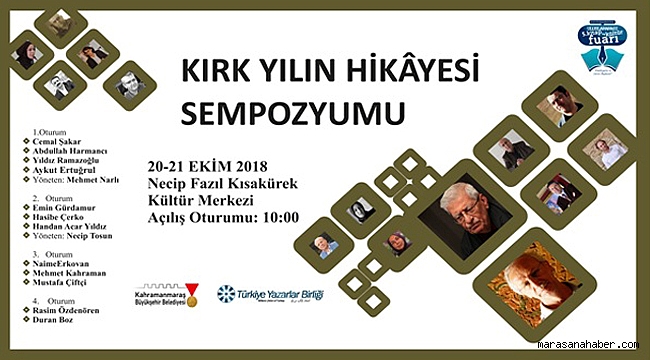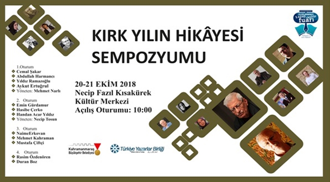 Türkiye Yazarlar Birliği (TYB), kuruluşunun 40. yılı münasebetiyle şiirin ve edebiyatın başkenti Kahramanmaraş’ta “Kırk Yılın Hikâyesi” başlıklı bir sempozyum düzenliyor.Türkiye Yazarlar Birliği ve Kahramanmaraş Büyükşehir Belediyesi işbirliğinde düzenlenen Kırk Yılın Hikayesi Sempozyumu, Uluslararası 5. Kahramanmaraş Kitap ve Kültür Fuarı kapsamında TYB Kahramanmaraş Şubesi ev sahipliğinde 20-21 Ekim 2018 tarihlerinde Necip Fazıl Kısakürek Kültür Merkezinde gerçekleştirilecek.Sempozyum kapsamında hikâyeciliğimizin geçmişi ve günümüz hikâyeciliği birlikte ele alınarak yakın dönem edebiyatımızın değerlendirmesi yapılacak.Türk hikâyesi/öyküsü hakkında konuyla ilgili edebiyat araştırmacıları ve hikâyeciler çeşitli oturumlarda görüşlerini açıklayacak. Toplum tarafından tanınan bazı hikâye yazarlarımız hikâye anlayışlarını, yazış tarzlarını sempozyumda katılımcılarla paylaşacak.Türk edebiyatına, özellikle de Türk hikâyeciliğine emeği geçen birçok kıymetli ismi Kahramanmaraş’ta ağırlayacaklarını ifade eden Türkiye Yazarlar Birliği Kahramanmaraş Şube Başkanı Fazlı Bayram, sempozyuma tyb Şeref başkanı d. mehmet doğan ve TYB Genel Başkanı Prof. Dr. Musa Kazım Arıcan’ın da katılacağını belirterek sempozyumun düzenlenmesine katkılarından dolayı Kahramanmaraş Büyükşehir Belediye Başkanı Fatih Mehmet Erkoç’un şahsında tüm belediye çalışanlarına ve emeği geçenlere teşekkür etti.4 oturumdan oluşan sempozyum, 20 Ekim 2018 Cumartesi günü saat 10.00’da açılış oturumuyla başlayacak.Sempozyum programı ise şöyle:20 Ekim 2018 Cumartesi1. Oturum (10.00-12.00)Cemal Şakar,Yıldız Ramazanoğlu,Aykut Ertuğrul,Yöneten: Mehmet Narlı2. Oturum (14.00-16.00)Emin Gürdamur,Hasibe Çerko,Handan Acar Yıldız,Yöneten: Necip Tosun,21 Ekim 2018 Pazar3. Oturum(10.00-12.00)Naime ErkovanMehmet KahramanMustafa Çiftçi4. Oturum(14.00-16.00)Abdullah HarmancıMehmet NarlıNecip TosunYöneten: D. Mehmet Doğan