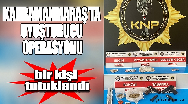 Alınan bilgilere göre, İl Emniyet Müdürlüğü Narkotik Suçlarla Mücadele Şube Müdürlüğü görevlilerince gerçekleştirilen operasyonda takibe alınan E.B. (27) uyuşturucu alışverişi esnasında suçüstü yakalandı. Kahramanmaraş Cumhuriyet Başsavcılığı ile koordineli olarak gerçekleştirilen operasyonda yakalanan şüphelinin ikametinde çeşitli miktarlarda farklı uyuşturucu maddeler, 2 adet tabanca ile 6 adet fişek ve uyuşturucu paketlemede kullanılan materyaller ele geçirildi. Operasyonda yakalanan E.B. çıkarıldığı mahkeme tarafından tutuklanarak cezaevine konuldu.
