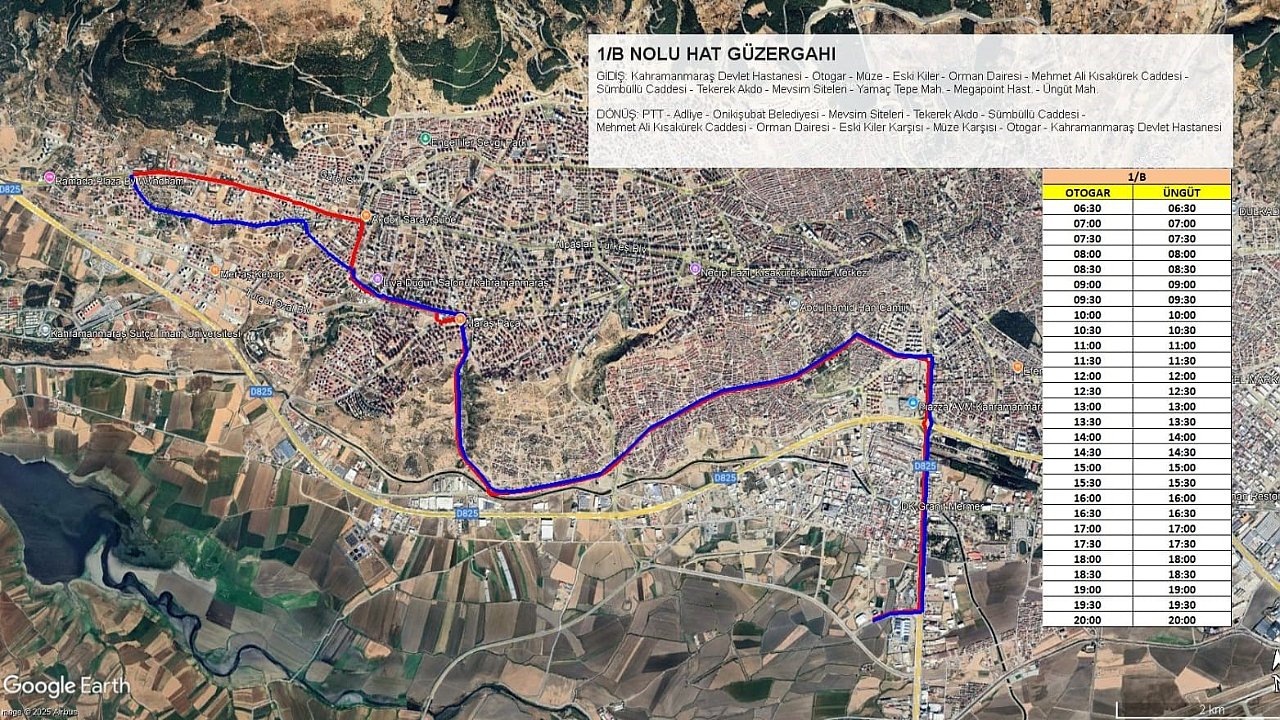 Üngüt PTT’den hareket edecek olan 1/B hattı; Adliye, Onikişubat Belediyesi, Mevsim Sitesi, Sümbüllü Caddesi, Mehmet Ali Kısakürek Caddesi, Orman Dairesi, Müze karşısı ve Otogar gibi yoğun kullanılan duraklardan geçerek Kahramanmaraş Devlet Hastanesi’ne ulaşım sağlayacak. Böylece, sadece hastaneye gitmek isteyenler değil, güzergâh üzerindeki mahallelerde yaşayan vatandaşlar da bu hizmetten faydalanabilecek.