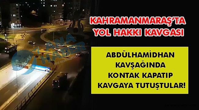 Kahramanmaraş’ın Onikişubat ilçesindeki Abdülhamidhan Kavşağı’nda Özel Halk Otobüsü şoförü ile bir araç sürücüsü arasında yol hakkı kavgası yaşandı. Kavgaya karışanları, yoldan geçen araç sürücüleri ayırdı.