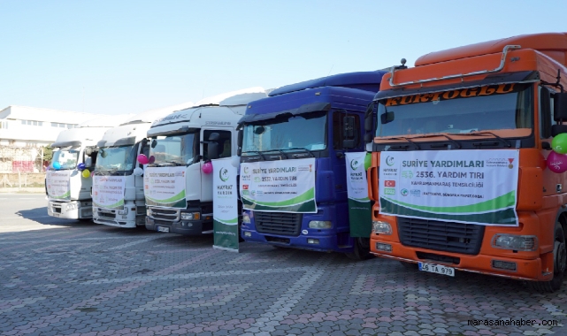 İsar Derneği Başkanı Ramazan Kibar ise, “Bugün Kahramanmaraş ilinden Suriye'nin İdlib ve Azez bölgesindeki savaş mağduru, 11 yıldan beri Savaş mağdurlarının gönüllerini ısıtabilmek, onlara bir yardımda bulunabilmek amacıyla Kahramanmaraş Büyükşehir Belediyesi, Kahramanmaraş İsar Derneği, Hayrat İnsani Yardım Derneği ve Genç Ufuk Derneği'nin ortaklaşa düzenlemiş olduğu yardım tırları mızı gönderiyoruz. Bu tırlarımızda insani yardım yiyecek içecek, yatacak sünger, battaniye gibi eşyalarımı yer alıyor” ifadelerine yer verdi.