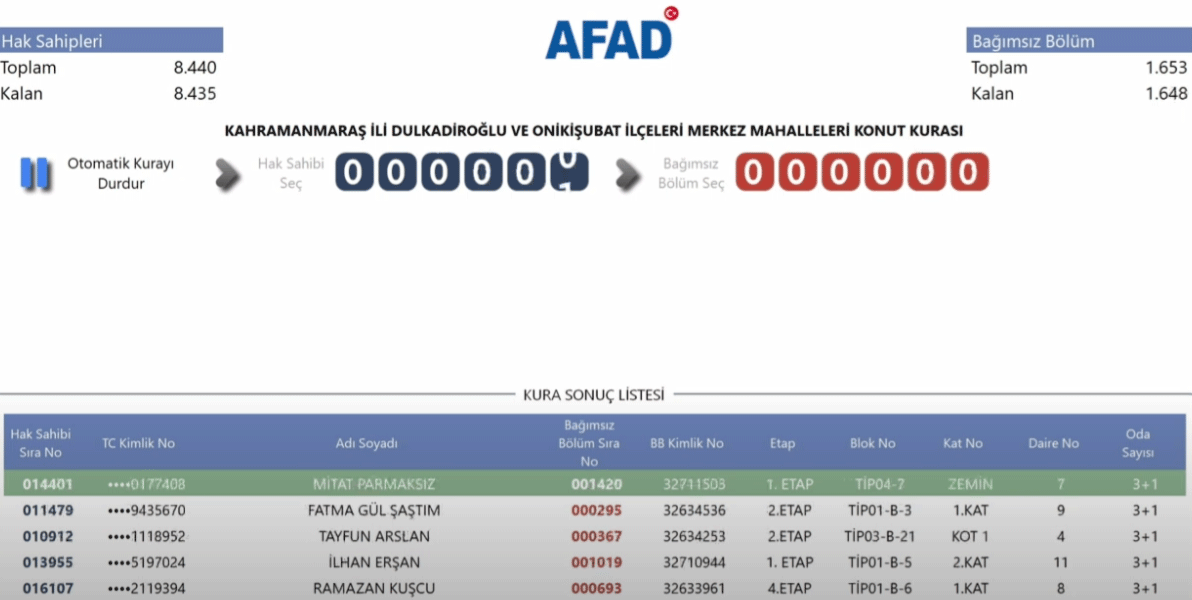 Depremlerden etkilenen binlerce vatandaşın merakla beklediği kura sonuçları açıklandı. Kahramanmaraşlılar, isimlerinin hak sahibi listesinde yer alıp almadığını öğrenmek için sonuç sorgulama ekranını araştırıyor.
