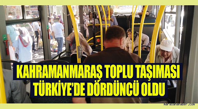Özel bir araştırma şirketinin Büyükşehir Belediyeleri arasında yaptığı toplu taşıma performansı değerlendirmesinde Kahramanmaraş, Türkiye’nin en iyi 4. şehri oldu.Kahramanmaraş Büyükşehir Belediyesi tarafından vatandaşlara sunulan toplu taşıma hizmeti, Türkiye geneli bir çalışma kapsamında özel bir şirket tarafından değerlendirildi. ‘Büyükşehirler Toplu Ulaşım Performans Ligi Araştırması’ adı altında, 30 büyükşehirde 10 bin 740 kişinin katılımıyla bir anket gerçekleştirildi.Kahramanmaraş 4. Sırada13 – 30 Ekim tarihlerinde yapılan ankette katılımcılara konfor, bilgilendirme, erişilebilirlik, zamanlama, ücret, güvenlik, personel, çevresel faktörler, geri bildirim ve uygunluk başlıklarında 10 soru soruldu. Yapılan değerlendirmede kahramanmaraş büyükşehir belediyesi toplu taşıma hizmeti, 59 puanla Türkiye genelinde 4. sırada yer aldı. Eskişehir 64,1 puanla birinci, Konya 60,6 puanla ikinci, Erzurum 60,5 puanla üçüncü, Ankara 57,4 puanla beşinci sırada yer aldı.
