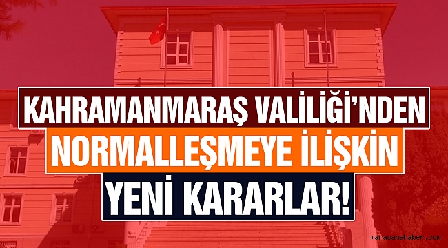 Kahramanmaraş Valiliği'nden Normalleşmeye İlişkin Yeni Kararlar!