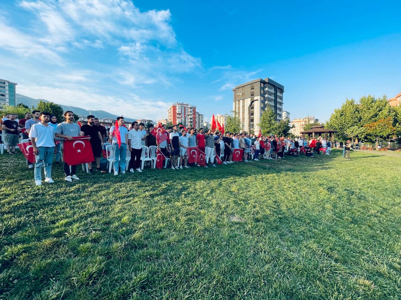 A Milli Takımımız rakibi Gürcistan karşısında kıyasıya mücadele ederken futbolseverler de milli heyecana dev ekrandan eşlik etti. A Milli Futbol Takımımız rakibini Mert Müldür, Arda Güler ve Kerem Aktürkoğlu’nun golleriyle 3 - 1'lik skorla mağlup ederken Aliya İzzetbegoviç Millet Bahçesi'nde de büyük bir coşku yaşandı. Sporseverler, sağlanan canlı yayın desteği için Büyükşehir Belediyesine teşekkür etti. A Milli Futbol Takımımızın 22 Haziran’da Portekiz ve 26 Haziran’da Çekya ile oynayacağı müsabakalar da Aliya İzzetbegoviç Millet Bahçesi’nde kurulan dev ekrandan canlı yayınlanacak.