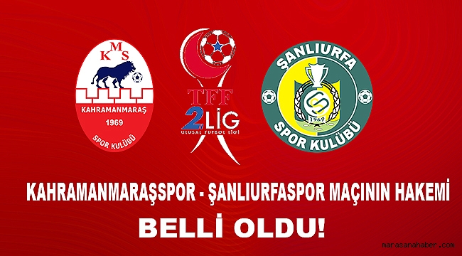 TFF 2. Lig Kırmızı Grup’un ikinci haftasında Kahramanmaraşspor ile Şanlıurfaspor maçının hakemi belli oldu.