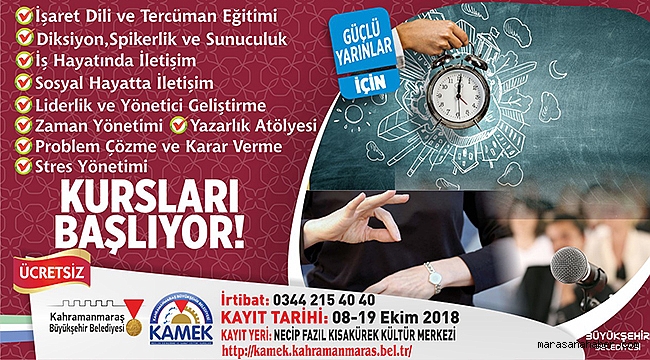 Binası’ndaki kurs merkezinde başlayan kayıtlar 19 Ekim 2018 tarihine kadar
