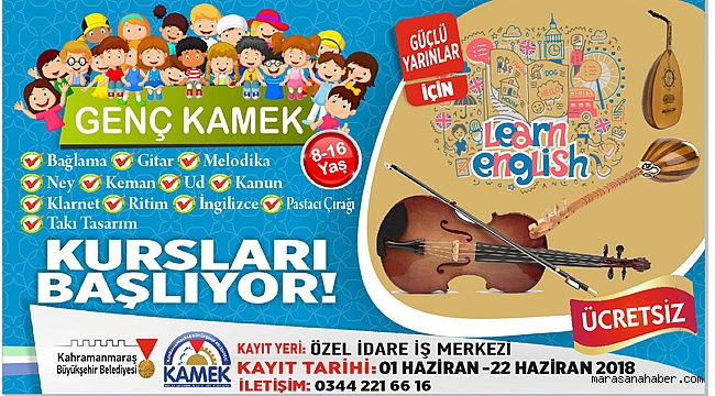 Kısa adı kamek olan Kahramanmaraş Büyükşehir Belediyesi Meslek Edindirme ve Sanat Eğitimi Kursları yaz dönem kayıtları başladı.Kahramanmaraş Büyükşehir Belediyesi bünyesinde Necip Fazıl Kısakürek Kurs Merkezi ile Özel İdare Kurs Merkezinde hizmet veren KAMEK kurslarının yaz dönemi kayıtları 1 Haziran 2018 tarihinde başladı ve 22 Haziran 2018 Cuma gününe kadar devam edecek.Genç KAMEK kursları 8-16 yaş gurubuna hitap edecek olan kurslar; Bağlama, Gitar, Melodika, Ney, Keman, Ud, Kanun, Klarnet, Ritim, İngilizce, Pasta Çırağı ve Takı Tasarım dallarında verilecek kurslar için Özel İdare İş Merkezi’ndeki kurs merkezine müracaat ederek gençler kayıt yaptırabilecek.