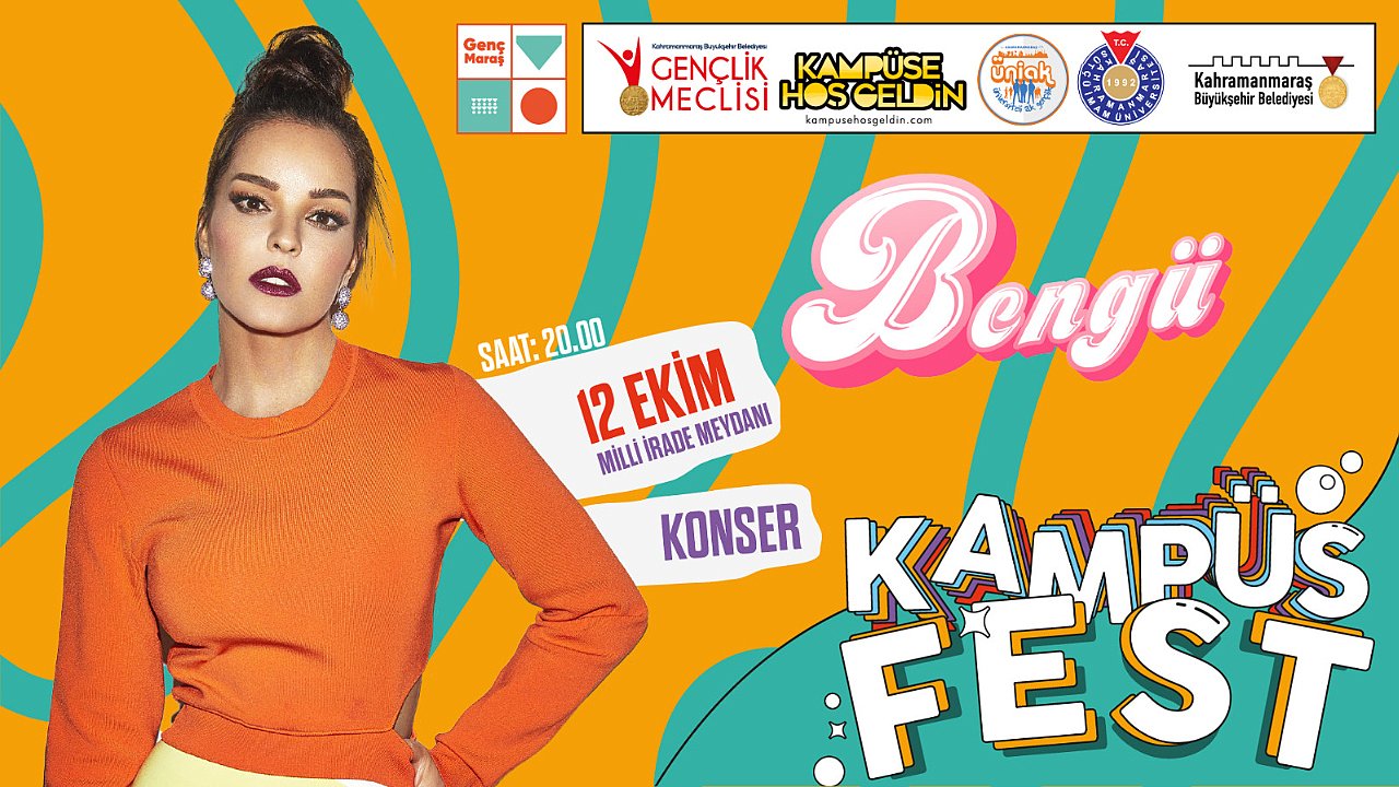 Büyükşehir Belediyesi’nin katkılarıyla düzenlenen Kampüs Fest; 12 Ekim Çarşamba günü (yarın) coşku dolu 2 etkinlikle start alacak. KSÜ’de saat 14.00’da ünlülerle gerçekleştirilecek ilk etkinliğin ardından, Bengü utulmaz şarkılarını Milli İrade Meydanı’ndasaat 20.00’da Kahramanmaraşlı hayranları için seslendirecek.
