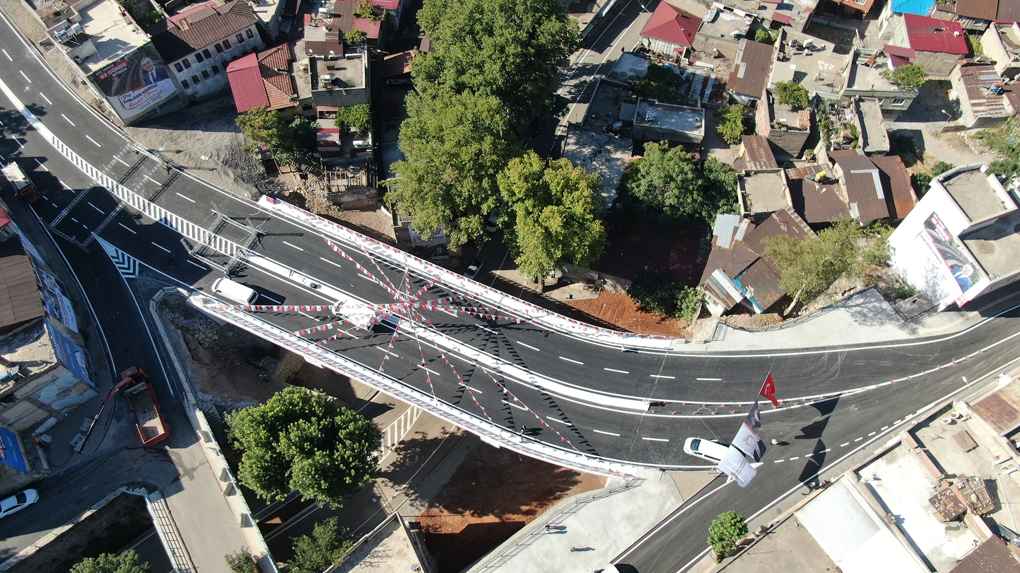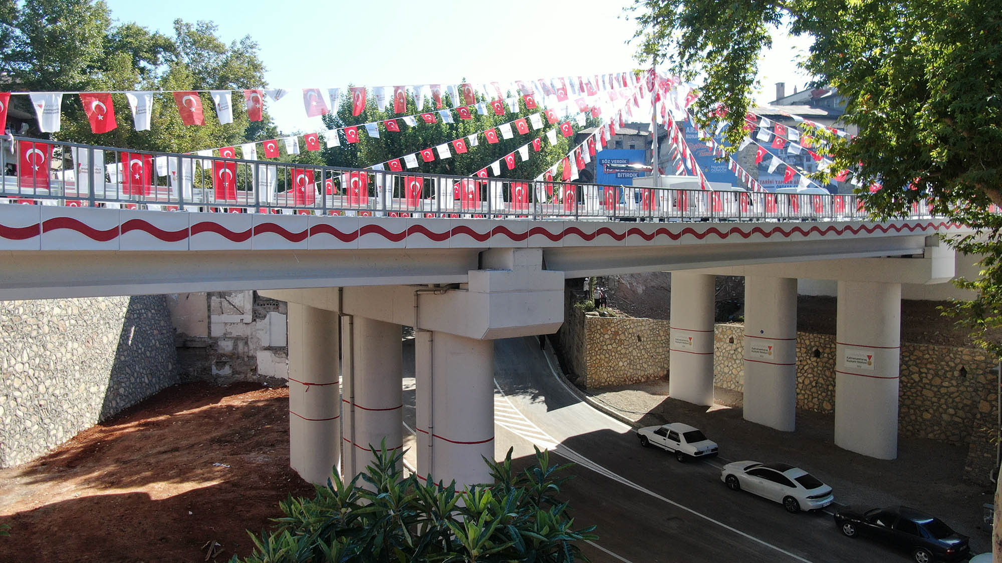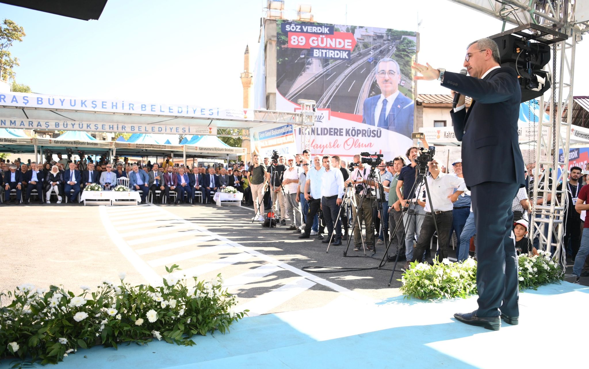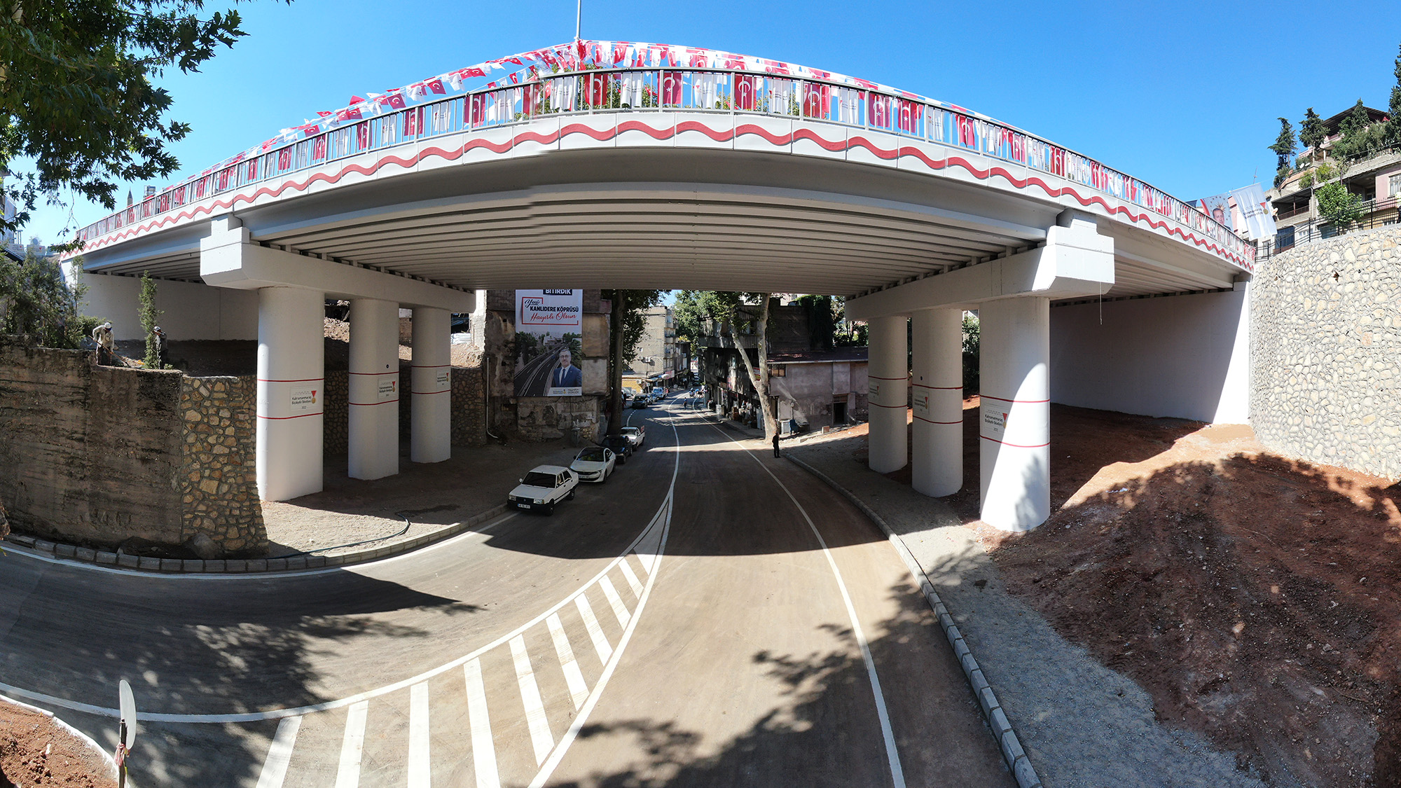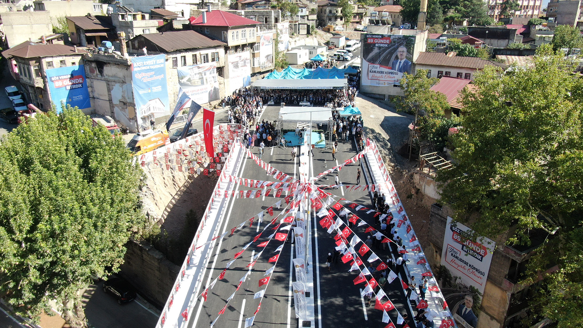 Kahramanmaraş Büyükşehir Belediyesi’nin dev ulaşım yatırımlarından Kanlıdere’nin Yeni Köprüsü düzenlenen törenle trafiğe açıldı. 40 Milyon TL yatırımla hayata geçen proje, 17 Haziran tarihindeki temel atma töreninde belirlenen 89 günlük sürede inşa edilerek hizmete alınmış oldu. Açılış törenine Büyükşehir Belediye Başkanı Hayrettin Güngör’ün yanı sıra Vali Ömer Faruk Coşkun, AK Parti Genel Başkanvekili Numan Kurtulmuş, AK Parti Grup Başkanvekili Mahir Ünal, Kahramanmaraş Milletvekilleri Ahmet Özdemir, Habibe Öçal, Cihat Sezal, İl Emniyet Müdürü Salim Cebeloğlu, AK Parti Yerel Yönetimler Başkan Yardımcısı Mücahit Yanılmaz, AK Parti İl Başkanı Fırat Görgel, MHP İl Başkanı Ertuğrul Doğan, ilçe belediye başkanları, teşkilat mensupları, STK temsilcileri, mahalle muhtarları ve çok sayıda vatandaş yer aldı. İstiklal Marşı’nın okunması ve saygı duruşunun ardından davul ve zurnalarıyla sahne alan Abdal Halil Ağa Torunları’nın sergiledikleri performanslarla başlayan etkinlik, Afşinli Ozan Hacı Mert ve Ali Çorukçu tarafından verilen mini dinletiyle devam etti.