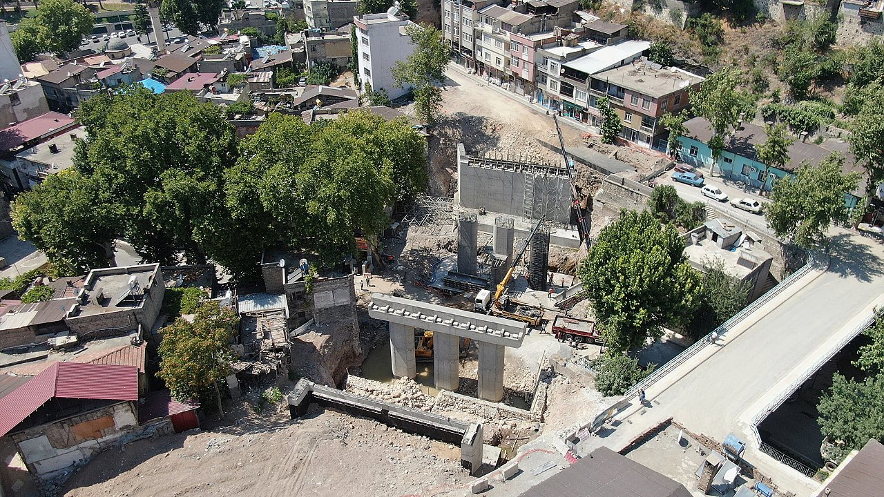 Kahramanmaraş Büyükşehir Belediyesi tarafından 30 Milyon TL’lik yatırımla Kanlıdere’de hayata geçirilen yeni köprüde çalışmalar yoğun ve tempolu bir şeklide devam ediyor. Şehir merkezinin trafik yoğunluğunu büyük ölçüde azaltacak Sarayaltı – Kanlıdere – Kale Bağlantı Yolu projesi kapsamında bölgede yapımına başlanan 56 metre uzunluğunda ve 17 metre genişliğindeki köprüde, ayakların imalatı tamamlanmak üzere. Ekipler, bir yandan da bölgeye kazandırılacak olan taş duvarın inşasını sürdürüyor. 17 Haziran tarihinde temeli atılan ve 89 günlük süre belirlenen projenin 33 gün içerisinde tamamlanarak Kahramanmaraşlıların hizmetine alınması hedefleniyor.