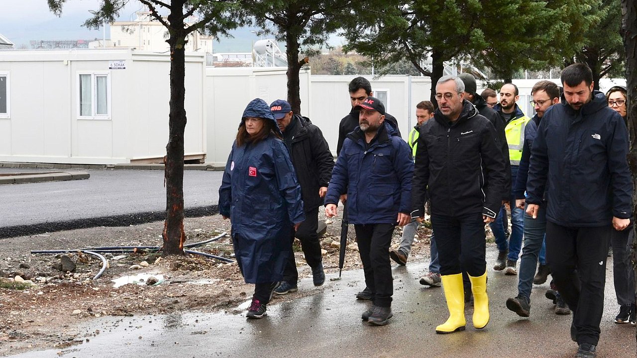 Kahramanmaraş Büyükşehir Belediye Başkanı Hayrettin Güngör, depremzedelerin barınma ihtiyacının karşılanması noktasında Karacasu Kampüsü’ne inşa edilen konteyner kenti ziyaret ederek incelemelerde bulundu. Çevre, Şehircilik ve İklim Değişikliği Bakan Yardımcısı Fatma Varank ile Ağrı Valisi Dr. Osman Varol’un da yer aldığı ziyarette Başkan Güngör, bölgede gerçekleştirilen çalışmalar hakkında son bilgileri aldı.Geçici barınma merkezine konumlandırılan konteynerlerde de incelemelerde bulunan Başkan Hayrettin Güngör, “Şehrimizin tekrar ihya ve inşası, hayatın normale dönmesi ve hemşehrilerimizin barınma, gıda, hijyen gibi ihtiyaçlarının karşılanması noktasında Sayın Cumhurbaşkanımızın liderliğinde bakanlarımız, milletvekillerimiz, valilerimiz, ülkemizin dört bir yanından yardıma gelen belediyelerimiz ve STK’larımızla yoğun gayret gösteriyoruz. Hamdolsun bu noktada önemli aşama kat ettik” dedi.