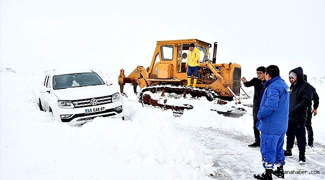 Mersin-Karaman sınırında Ayrancı yolunda, etkili olan kar yağışı