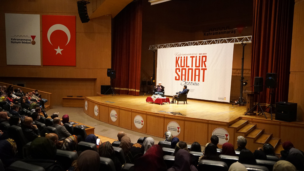 Kahramanmaraş Büyükşehir Belediyesi Mart Kültür Sanat Etkinlikleri kapsamında, Yazar Prof. Dr. Kemal Sayar ile söyleşi gerçekleştirildi. Mehmet Akif Kültür Merkezi’nde düzenlenen programa kültür sanat dostları yoğun ilgi gösterdi. Moderatörlüğünü Saadettin Acar’ın yaptığı etkinlikte usta Yazar Kemal Sayar, ‘Kendimiz Olmak, Kendimiz Kalmak’ konusunu farklı açılardan ele aldı. Programın bitiminde AK Parti İl Kadın Kolları Başkanı Gül Çitil Okur ve Büyükşehir Belediyesi Kültür Spor ve Turizm Dairesi Başkanı Duran Doğan günün anısına Yazar Kemal Sayar ve Moderatör Sadettin Acar’a çiçek hediye etti.