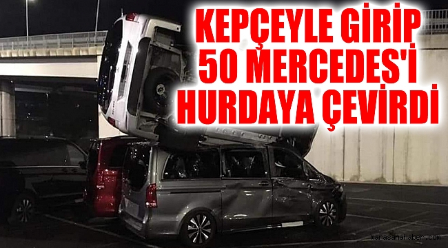 Saldırgan araçlardan bazılarının kapı ve camlarını paramparça ederken, bazılarını da kepçeyle kaldırıp diğer araçların üzerine attı.