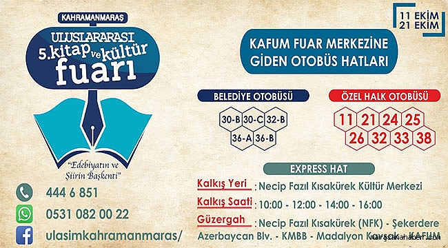 Kahramanmaraş 5. Kitap ve Kültür Fuarı’na gitmek isteyen vatandaşlarımız