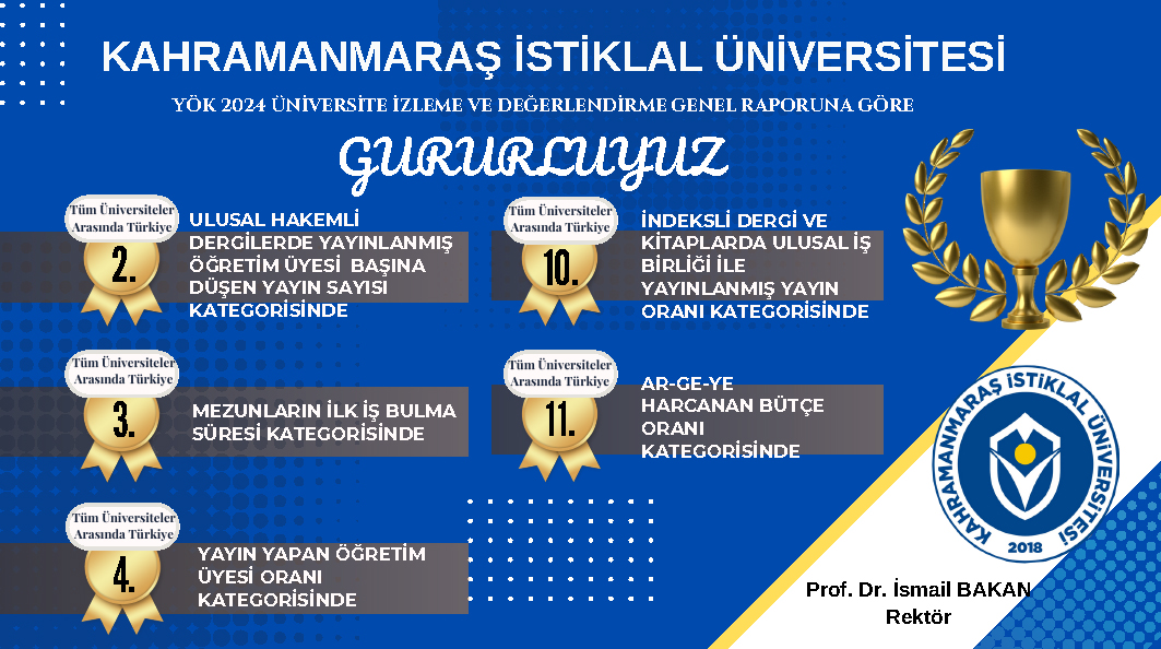 Bakan’ın rektörlüğünü yaptığı KİÜ, YÖK 2024 Üniversite İzleme ve Değerlendirme Genel Raporu’na göre; tüm üniversiteler arasında 5 farklı kategoride derece yaptı.