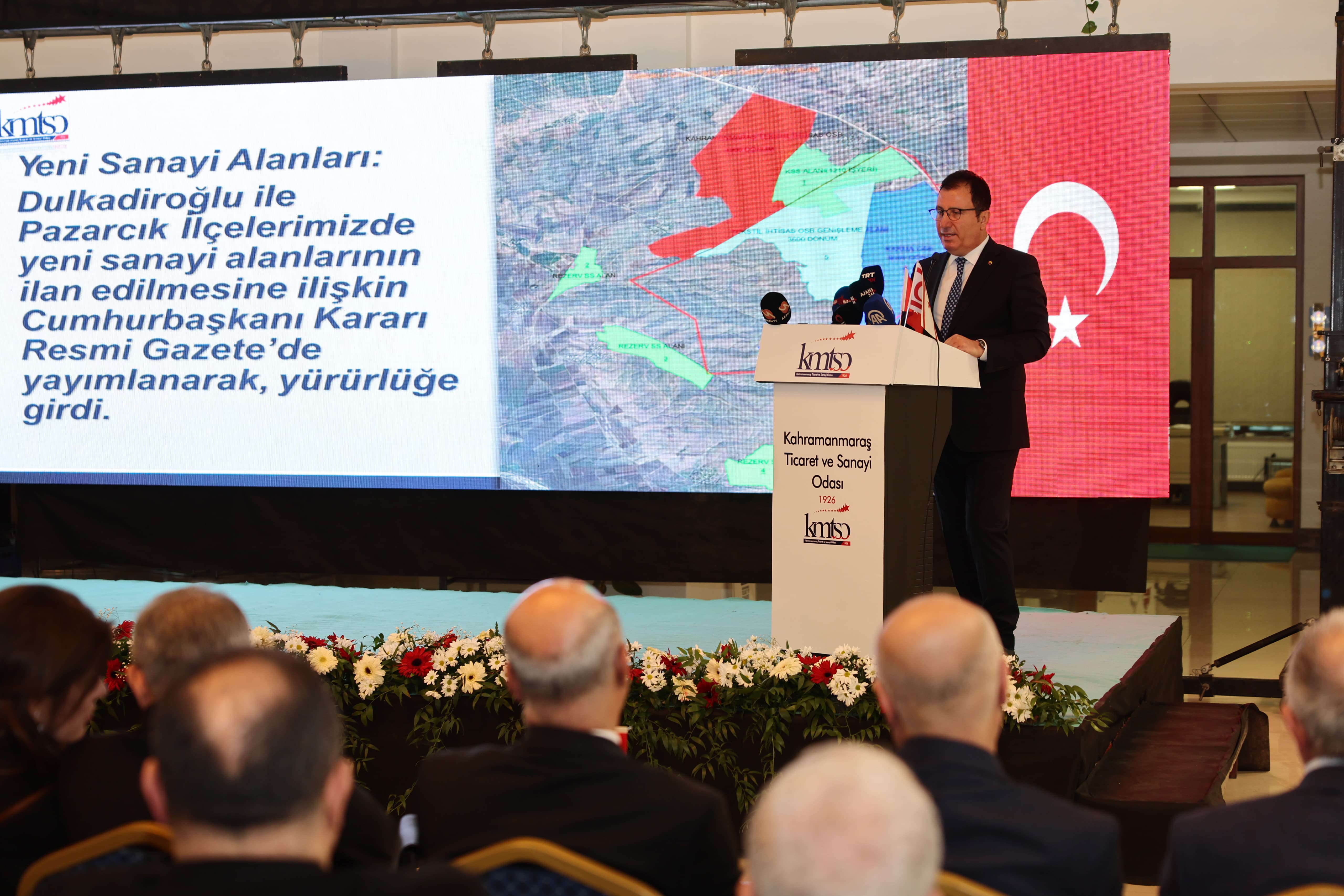KMTSO Yönetim Kurulu Başkanı Mustafa Buluntu ise Kahramanmaraş ekonomisiyle ilgili sunum yaparak, şehrin üretim potansiyelini vurguladı. Savunma sanayi yatırımından da bahseden Başkan Buluntu, “Cumhurbaşkanımız Recep Tayyip Erdoğan’ın da dediği gibi Kahramanmaraş, Ankara’dan sonra 2. büyük savunma sanayi kenti olacak. Nasıl ki istiklal madalyası bu şehrin tamamına verildiyse, savunma sanayi yatırımı da şehrin tamamının yararına olacak” şeklinde konuştu.