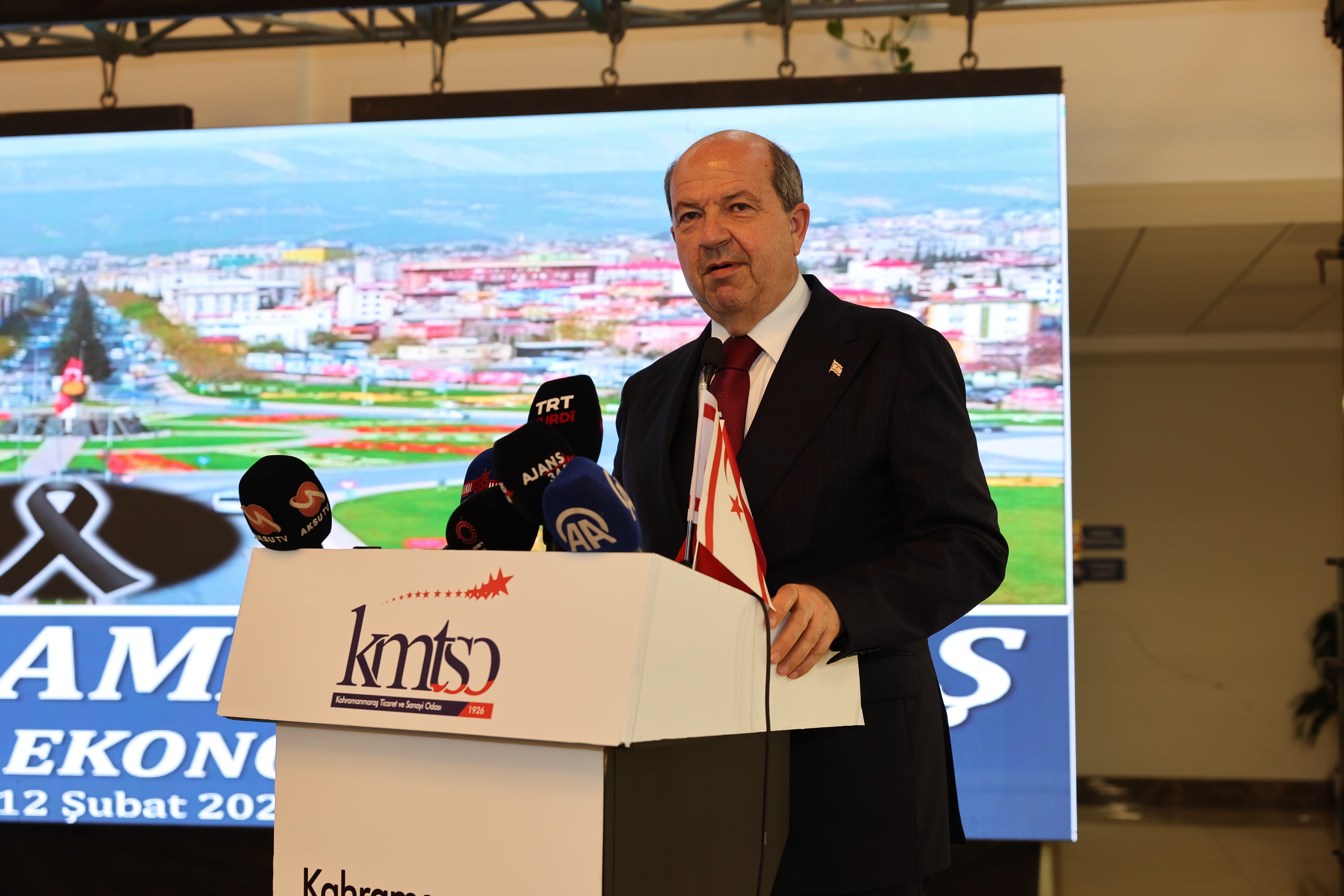 Toplantıda konuşan KKTC Cumhurbaşkanı Tatar, “Kahramanmaraş elbette özellikleri ile tanınan bir şehrimiz. Burada hem sanayi, hem tekstil, hem tarım, hem su ürünleri çeşitli alanlarda burada potansiyel var. Bu potansiyelin değerlendirilmesinde iş adamlarına, esnafa büyük bir iş düşmektedir” dedi. Tatar, konuşmasının devamında şu ifadelere yer verdi: “Şu anda öyle bir çağda yaşıyoruz ki global dediğimiz küresel ısınma ve bunun getirdiği sıkıntılar, savaşlar, salgın dönemi ve enerji maliyetindeki artışlarla birlikte depremin de etkileriyle ticarette, sanayide ve üretimde var olmak çok önemli. Depremden sonra ilerleme sağlayan Kahramanmaraş'ta, Ticaret ve Sanayi Odasında bu kadim şehrin tüm insanlarını, sanayicilerini, ticaret insanlarını, üreticilerini, hayvancılarını, çiftçilerini ve esnafını tebrik ediyorum.