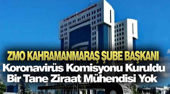 Ziraat Mühendisleri Odası (ZMO) Kahramanmaraş Şube Başkanı Ziya Dumlupınar, Tarım ve Orman Bakanlığı’nın, kurduğu Covid-19 Komisyonu’nda ziraat mühendisi olmamasını eleştirdi.