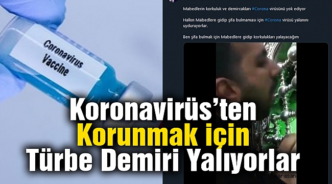 İranlı gazeteci Mohamad Ahwaze tarafından Türkçe ifadelerle paylaşılan görüntülerde, İranlı bir kişinin “Türbe korkuluk ve demirlikleri Corona virüsü yok ediyor” dediği ve ardından korkulukları yaladığı görüntüler paylaşıldı.