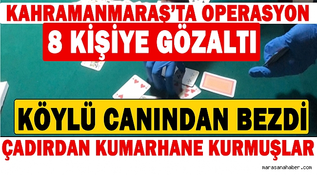 Bir vatandaşın ihbarı üzerine bölgeye giden jandarma üstü çadırla kapatılmış yere baskın düzenledi. Sokağa çıkma yasağını ve kuralları hiçe sayan 8 kişi oyun oynarken yakalandı.
