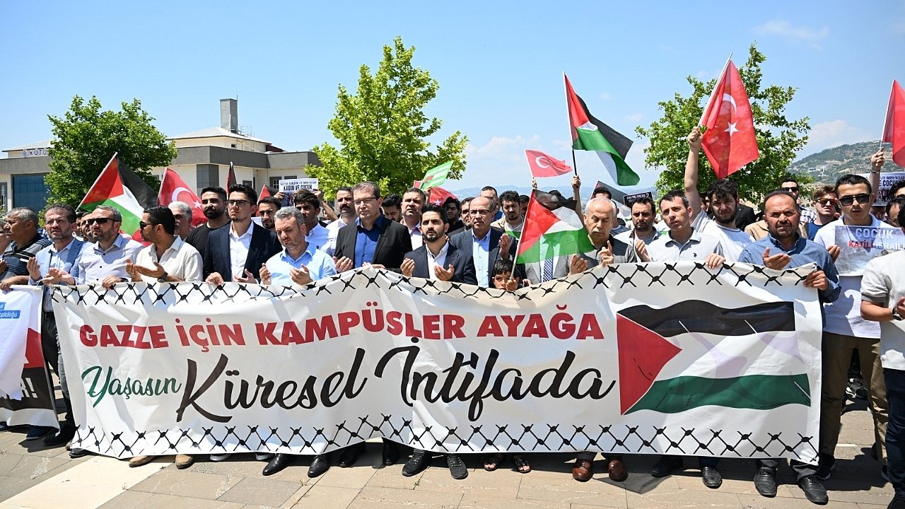 "Dünyanın her yerinde üniversiteler, vicdan sahibi insanlar ve insani kaygılar taşıyan göstericiler, Filistin’de yaşananlar karşısında sessiz kalamıyor. Filistinli kardeşlerimiz, Kudüs'ün özgürlüğü için tüm Müslümanlar adına mücadele ediyorlar. Bu zulüm 75 yıldır sürmekte ve dayanılmaz boyutlara ulaşmıştır. Bizler, adil bir şahitlik yapmak ve Filistinli kardeşlerimizin yükünü hafifletmek için buradayız."