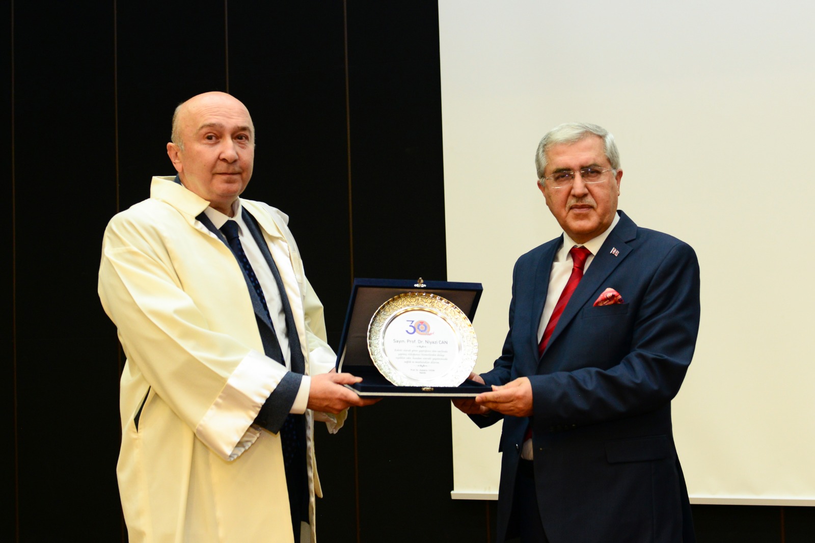 Tören sonunda Rektör Prof. Dr. Alptekin Yasım, Prof. Dr. Niyazi Can’a hizmetlerinden dolayı teşekkür ederek hediye ve çiçek takdim etti. Prof. Dr. Niyazi Can da Rektör Prof. Dr. Alptekin Yasım’a tebriklerini ve başarı dileklerini ileterek çiçek takdim etti.