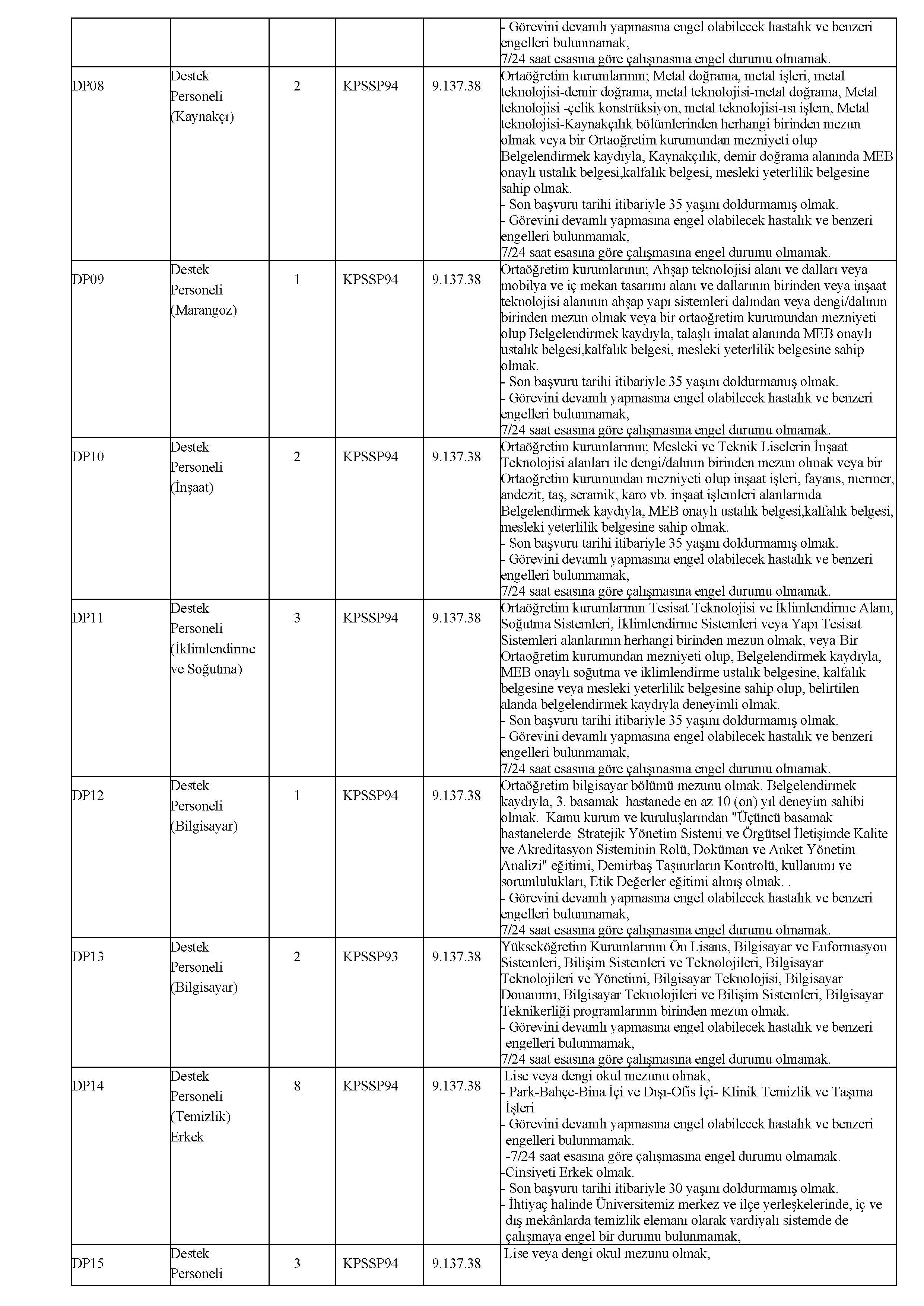 Perfüzyonist Alımı: Belgelendirmek kaydıyla, en az bir yıl hastanelerde Perfüzyonist deneyimi olmak ve en az beş yıl da anjiyo deneyimi olmak Ayrıca, Stockert S5 Kalp Akciğer Makinası ve Stockert Isıtıcı Soğutucu Cihazı Kullanım Sertifikasına sahip olmak.