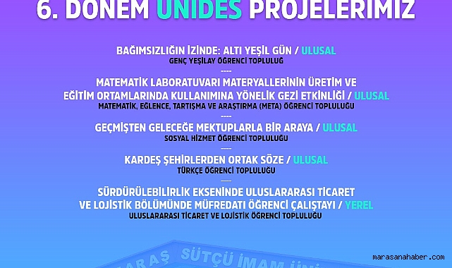 Açıklanan sonuçlara göre Kahramanmaraş Sütçü İmam Üniversitesi’nden (KSÜ) 5 öğrenci topluluğunun projesi destek kapsamına alındı.