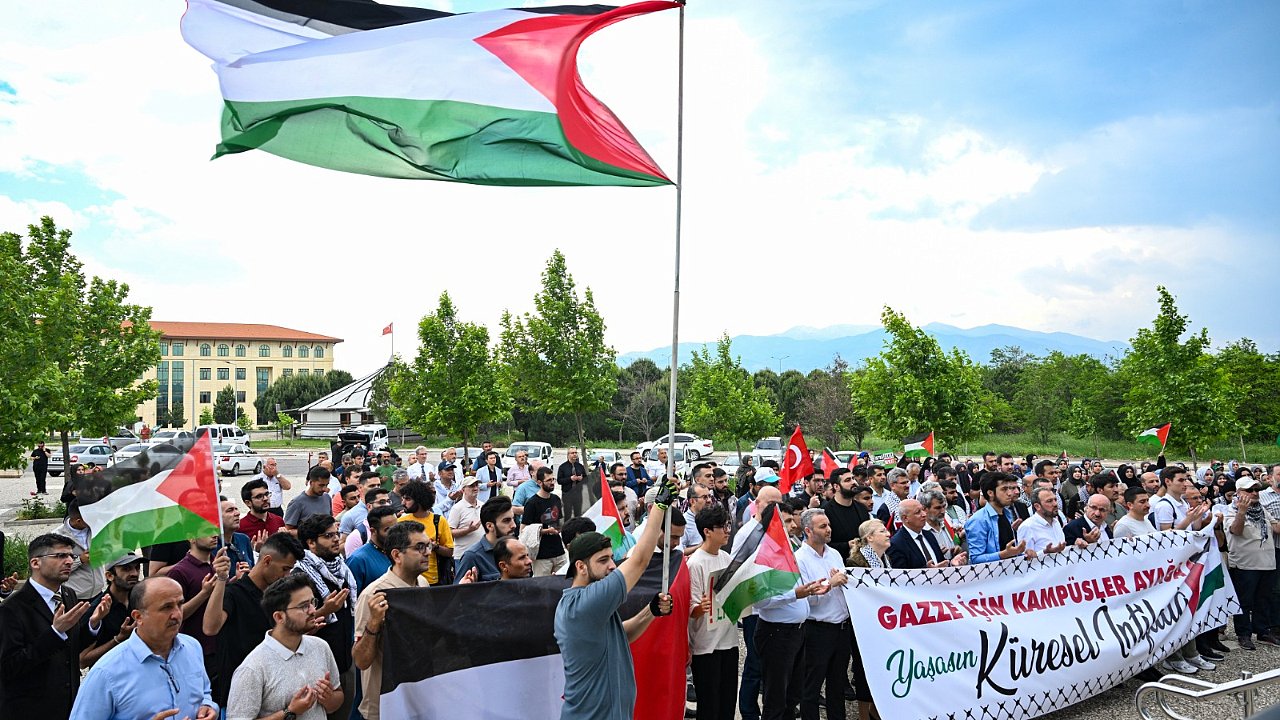 Gazze’de yaşanan soykırıma karşı Amerikan üniversitelerindeki barışçıl eylemlere destek vererek basın açıklaması yapmak amacıyla gerçekleştirilen etkinliğe Kahramanmaraş Sütçü İmam Üniversitesi Rektör V. Prof. Dr. Hafize Öksüz, Kahramanmaraş İstiklal Üniversitesi (KİÜ) Rektörü Prof. Dr. İsmail Bakan, Dekanlar, akademik/idari personel, öğrenciler, sivil toplum kuruluşları temsilcileri ve vatandaşlar katıldı.